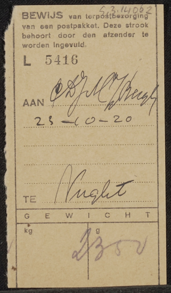 Reçu van pakketje verzonden aan Cees van den Bergh
