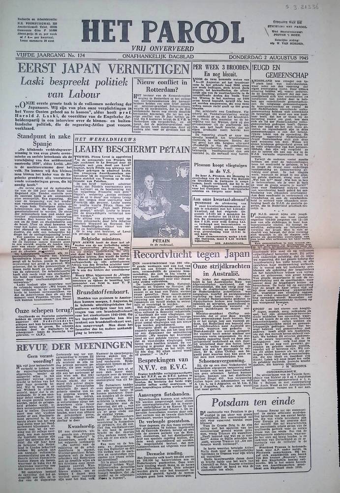 Het Parool, 2 augustus 1945, 5e Jaargang, No 174