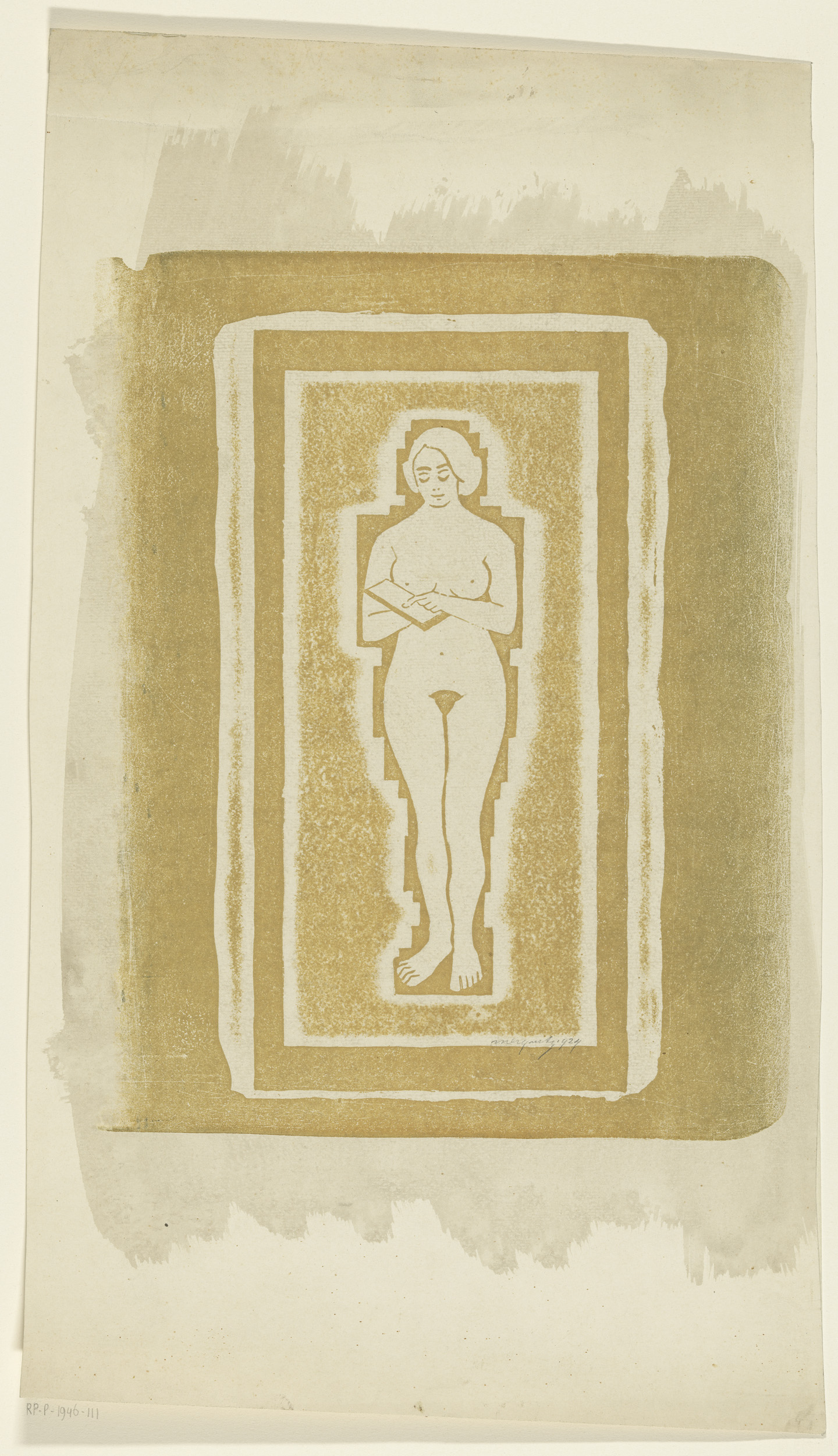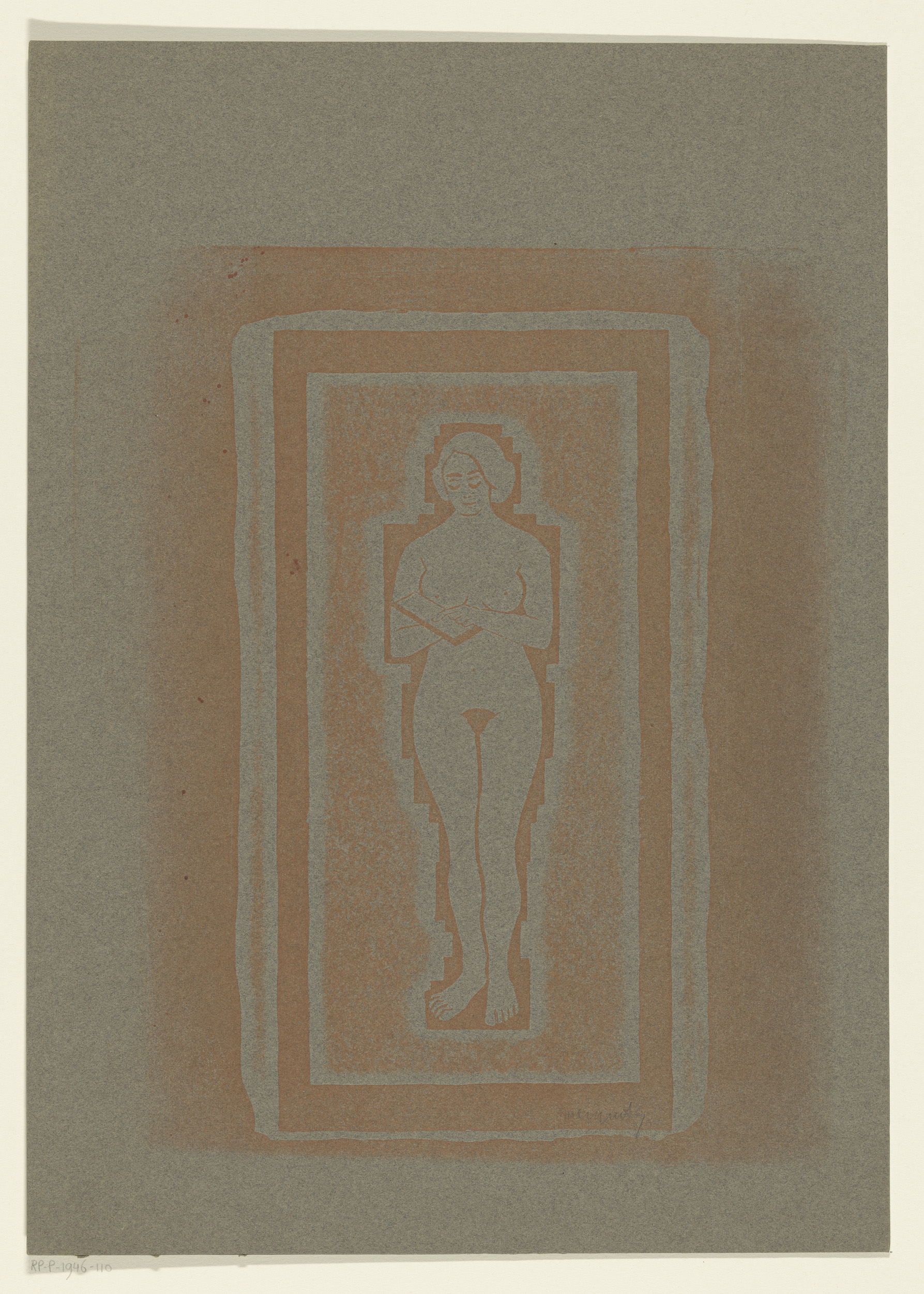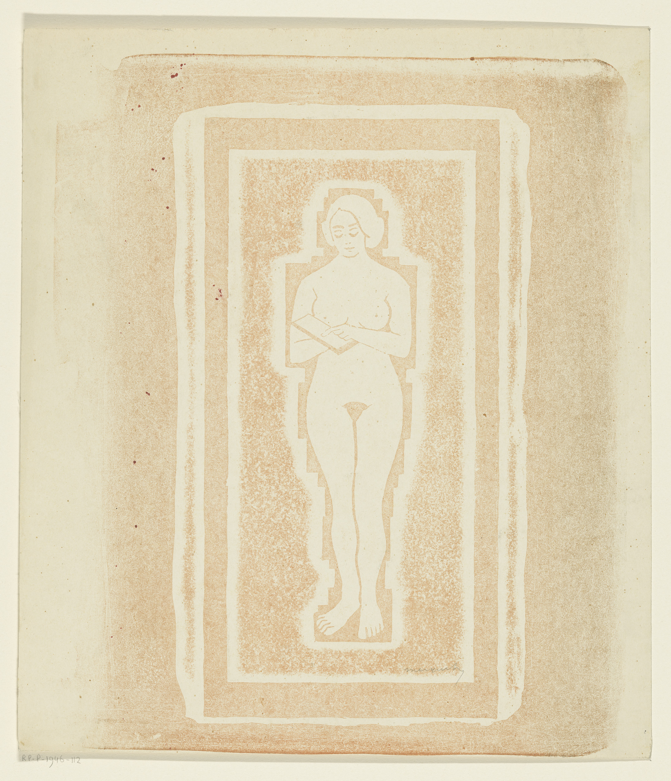 Naakt met boek of stenen plaat in de hand