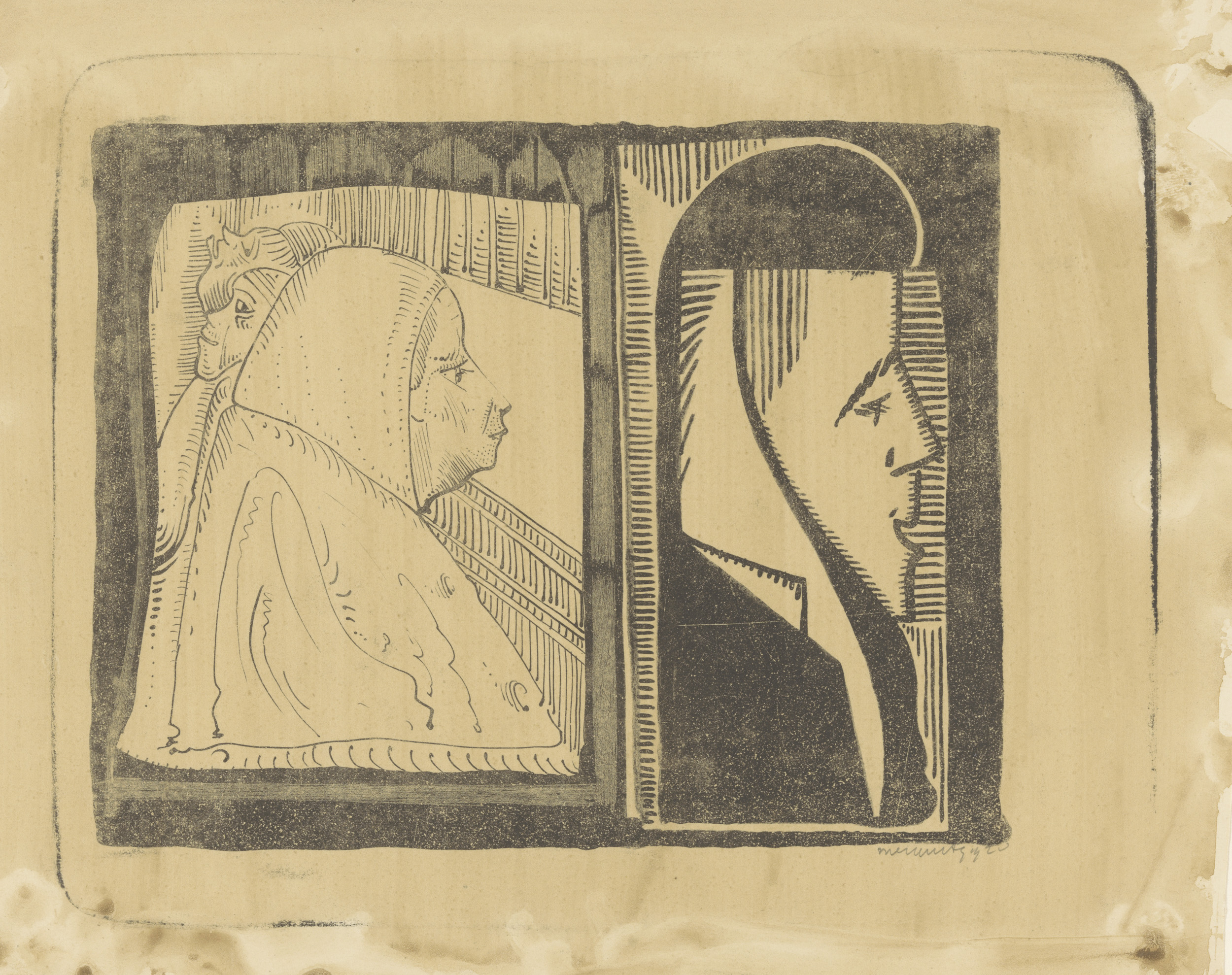 Fantasie: twee kaders, in elk een profiel naar recht...