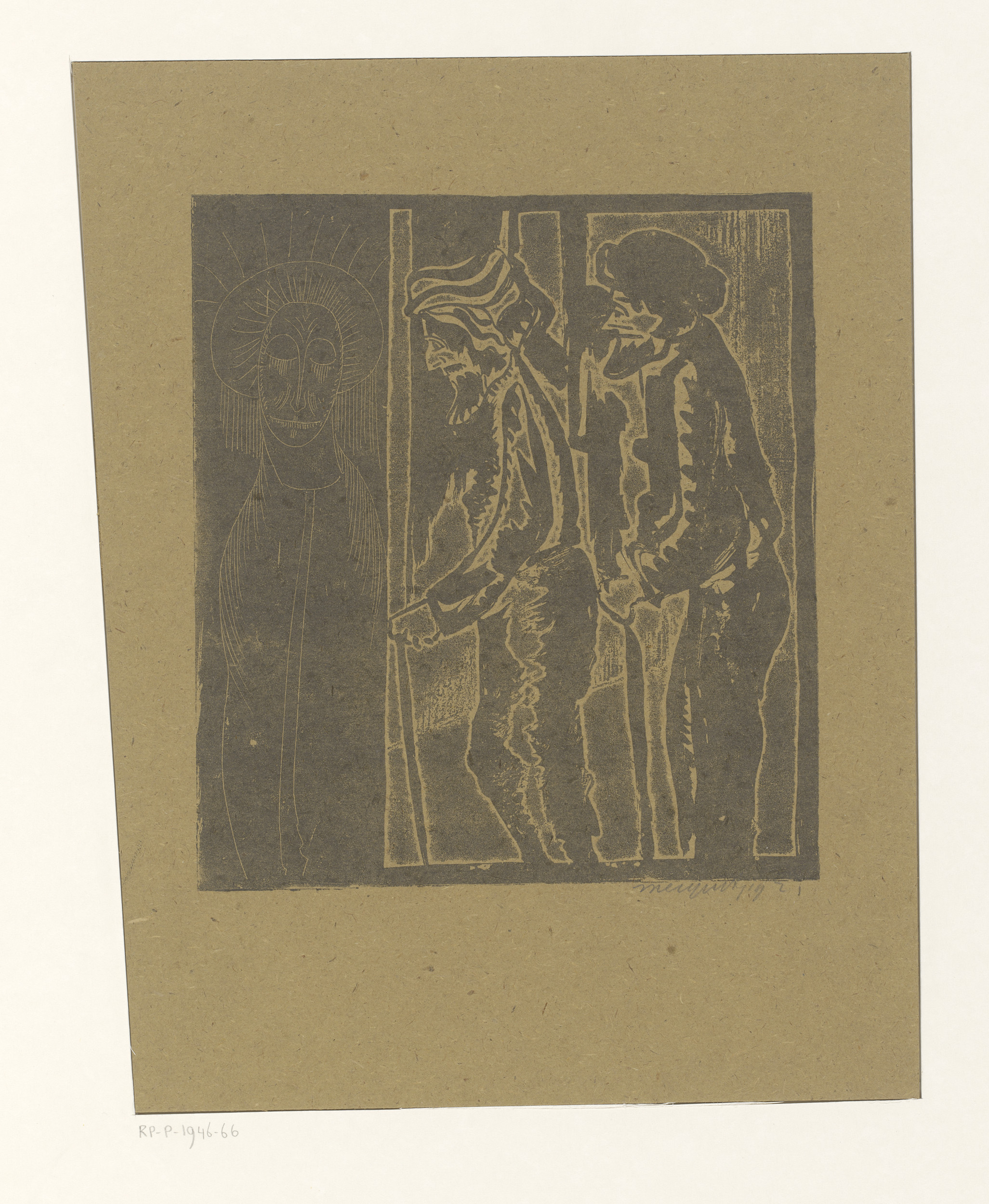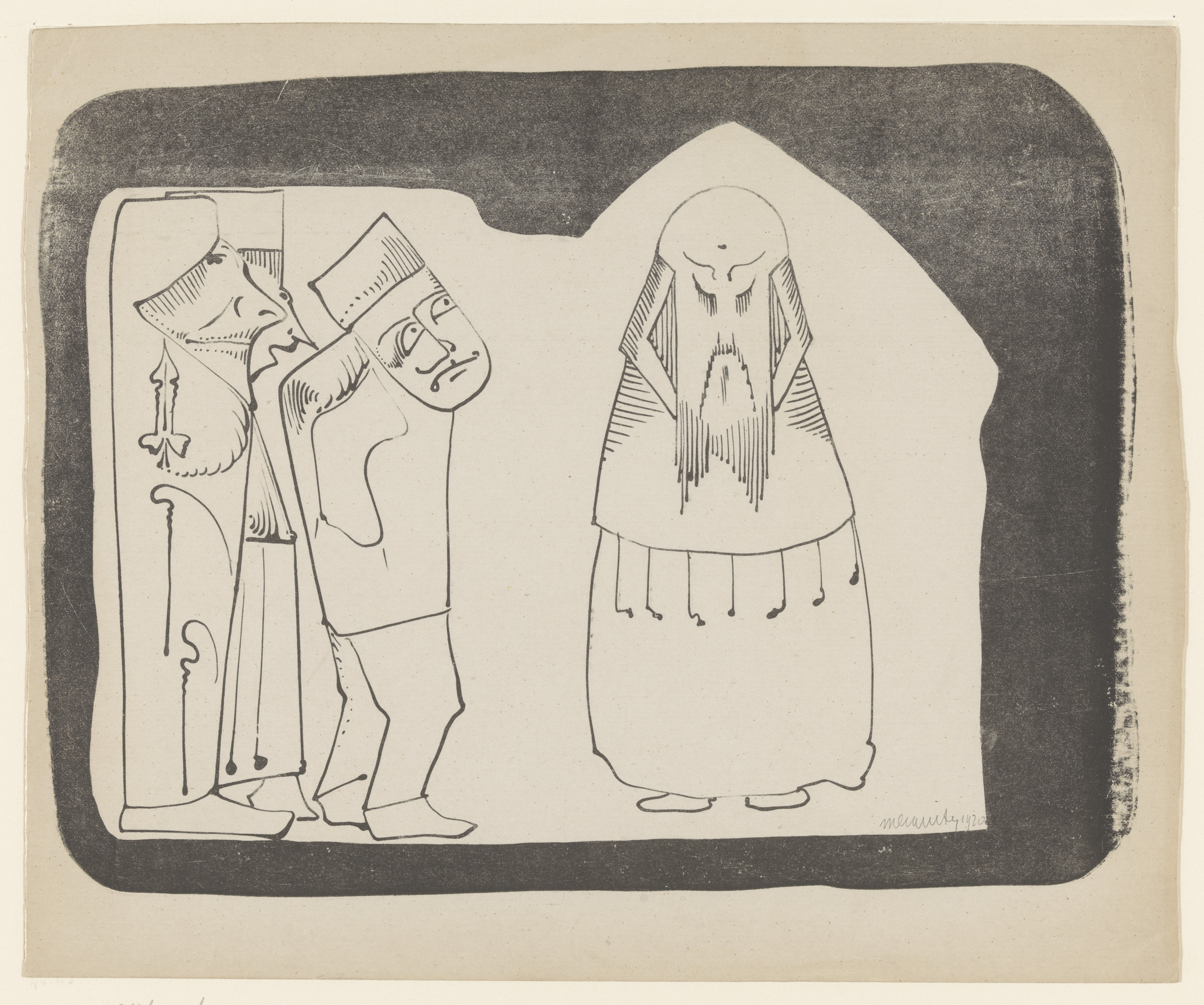 Fantasie: links twee figuren met mutsen op naar rech...
