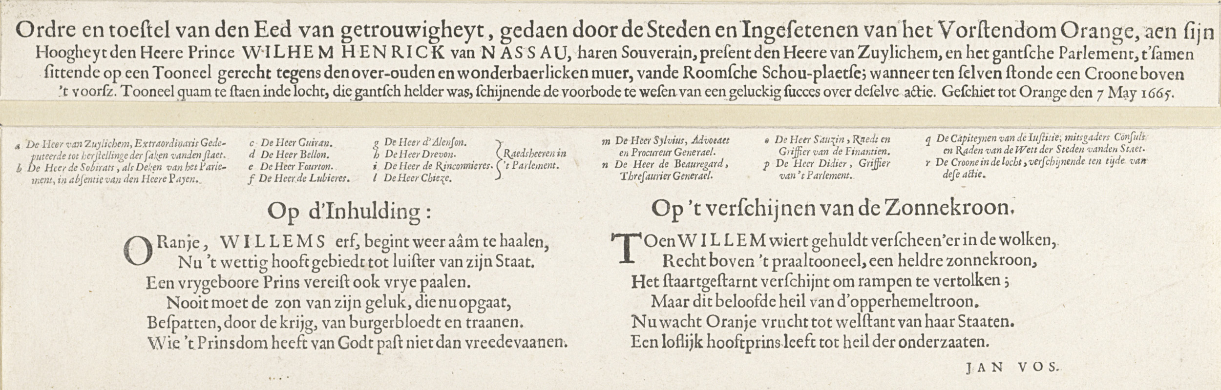 Eed van trouw afgelegd door het vorstendom Orange aa...