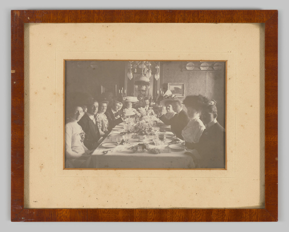 Foto van een gezelschap aan tafel