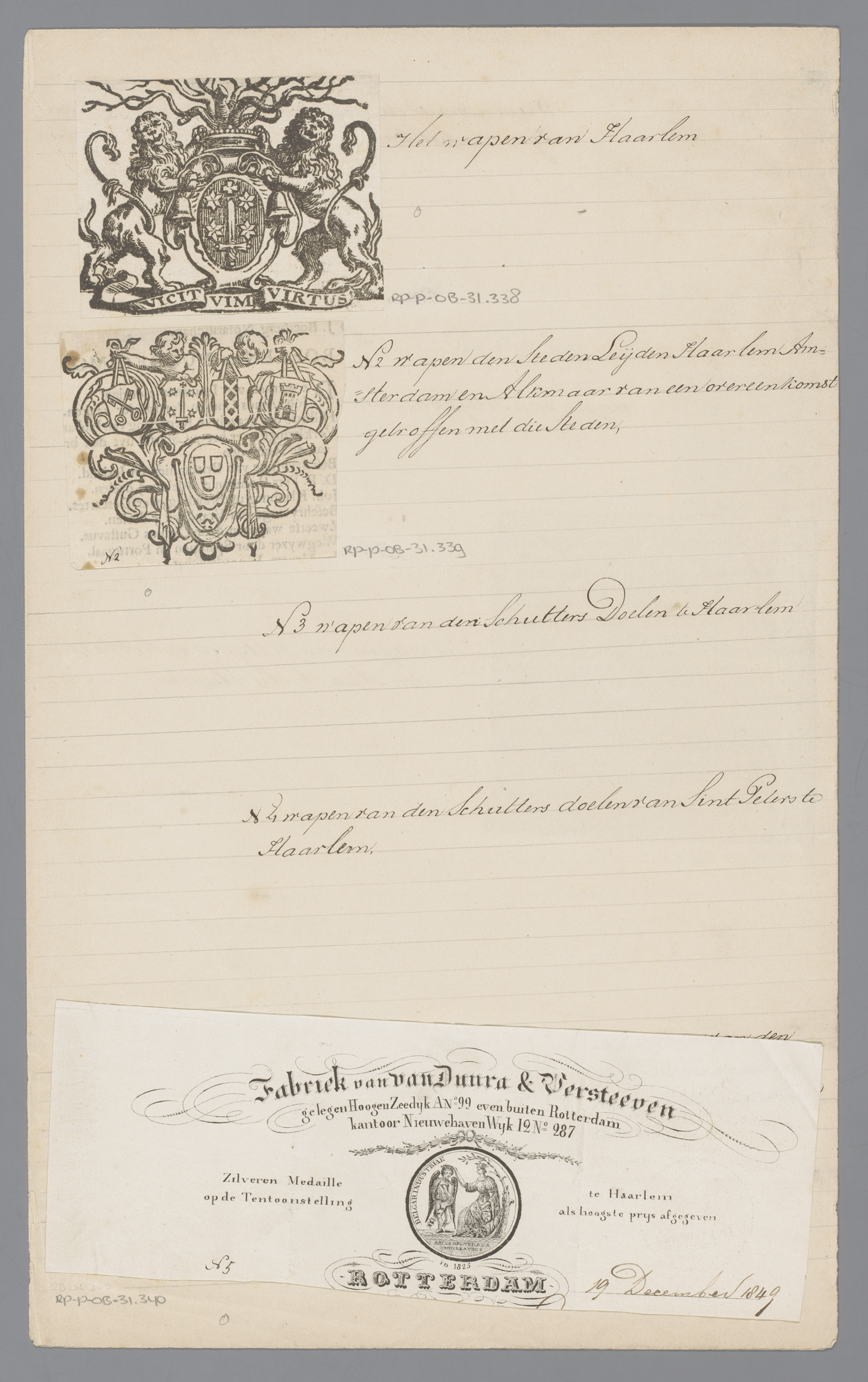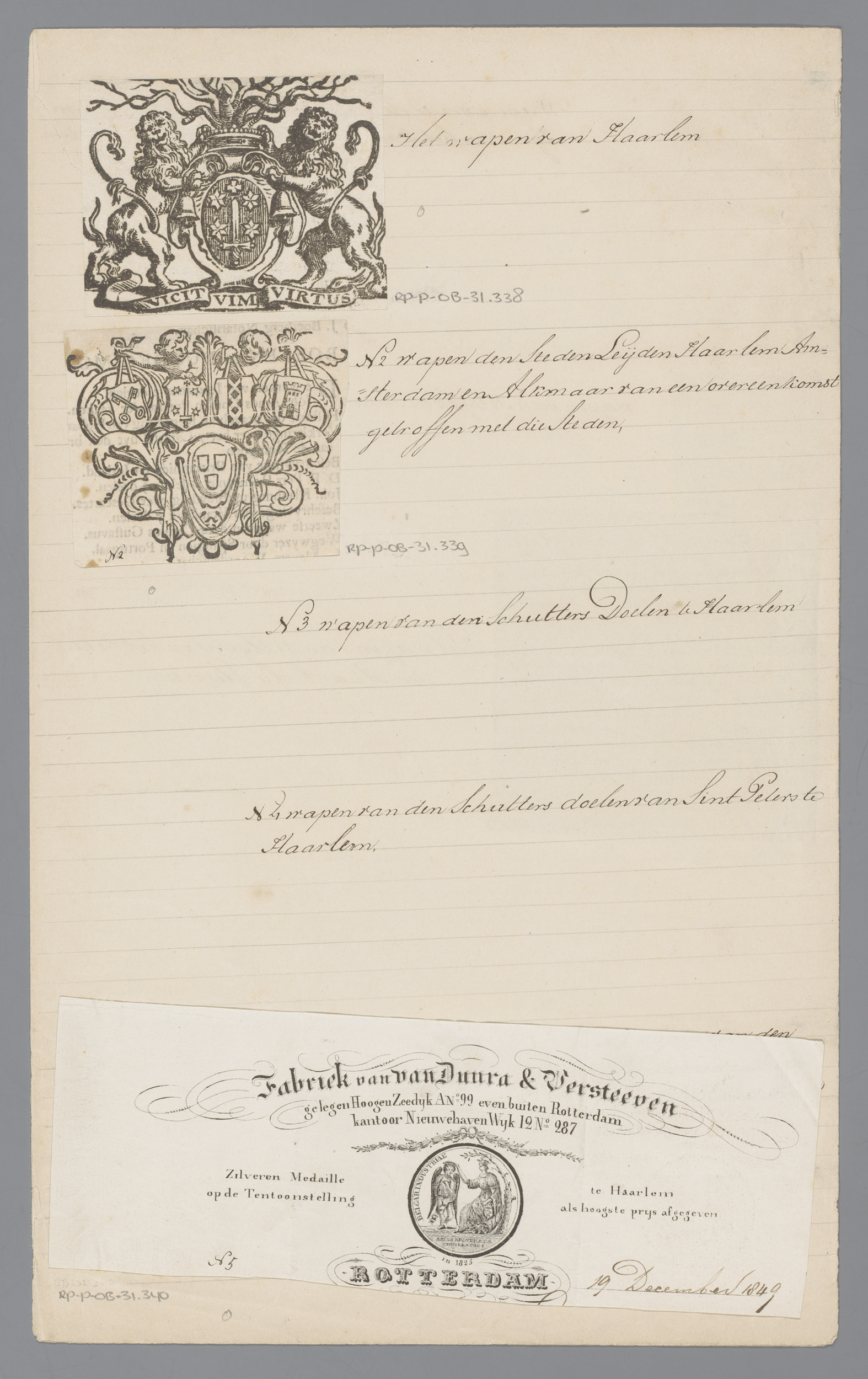Vignet met het wapen van C. de Koning Tilly Haarlemm...
