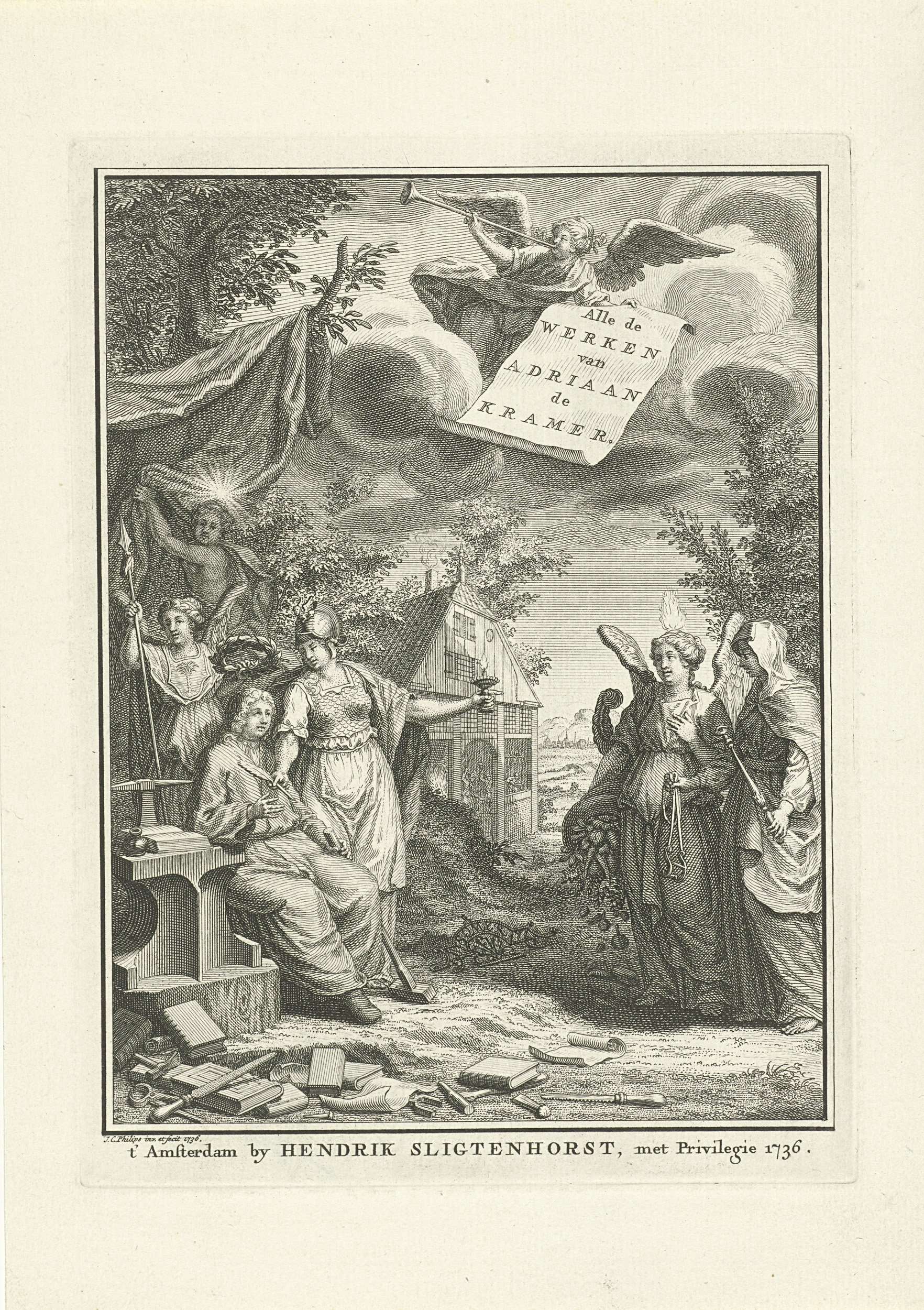 Minerva overhandigt de schrijfveer aan Adriaan de Kr...