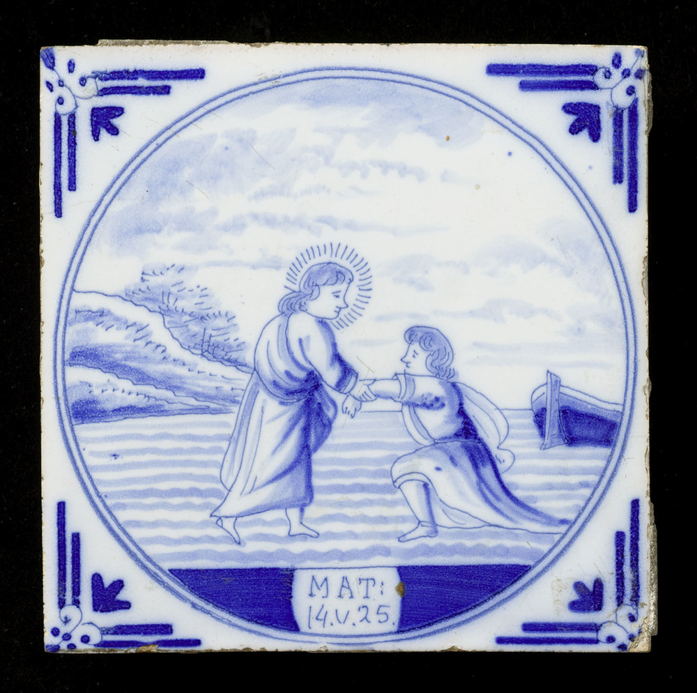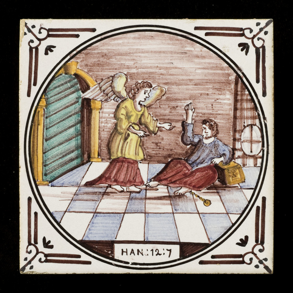 Tegel van keramiek met tinglazuur, voorstellende: Pe...