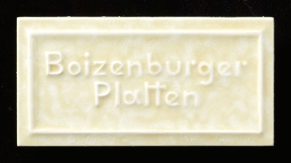 Tegel met eigen reclame van Boizenburger Wandplatten...