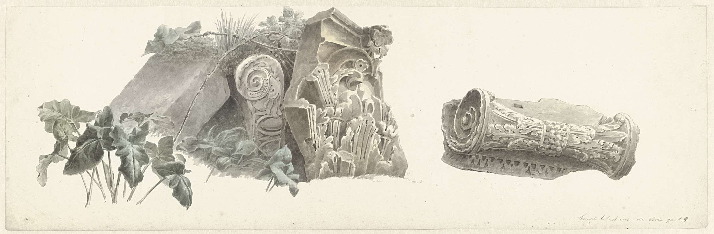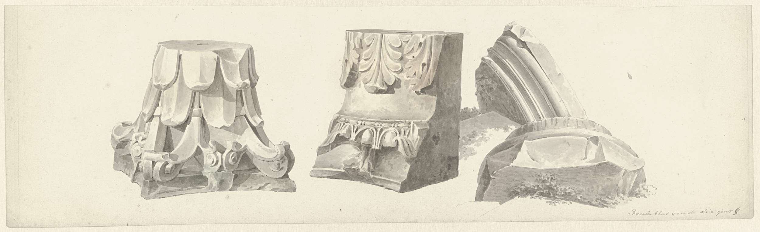 Vijf kapitelen in de Villa Mattei in Rome