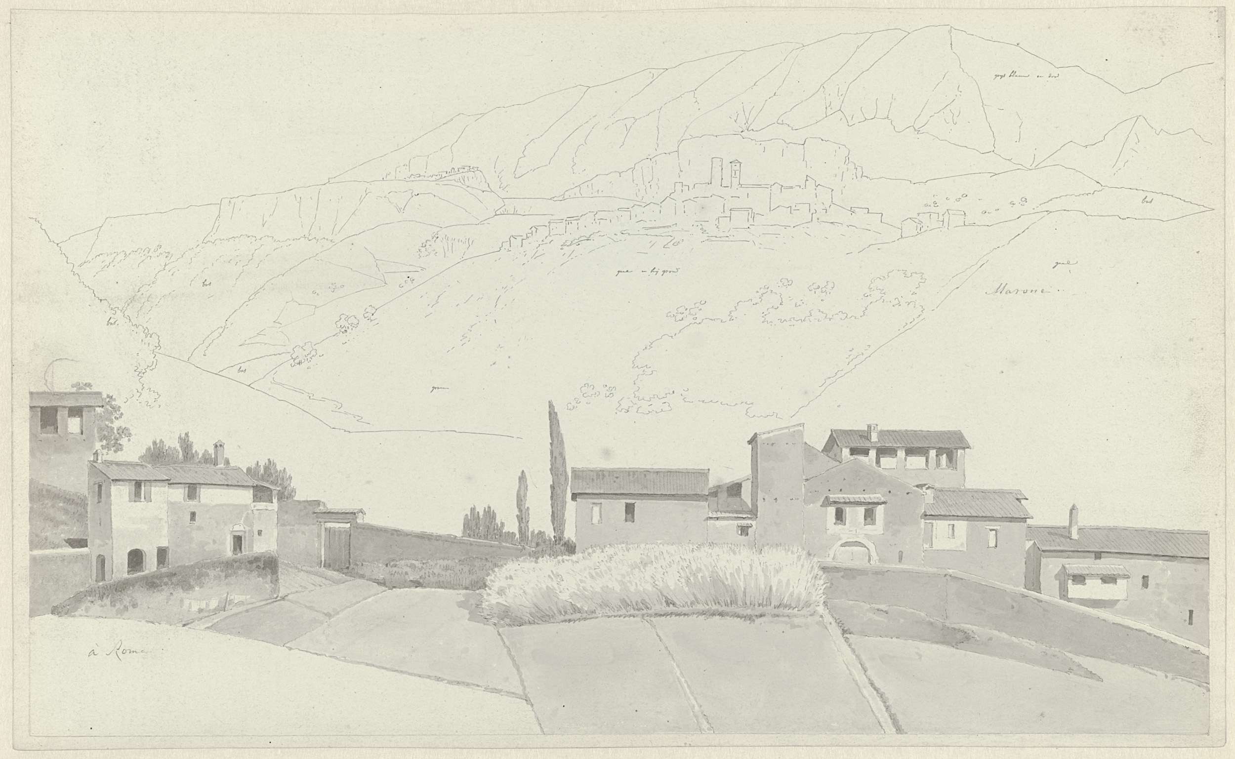 Gezicht op Marone, en huizen in of bij Rome
