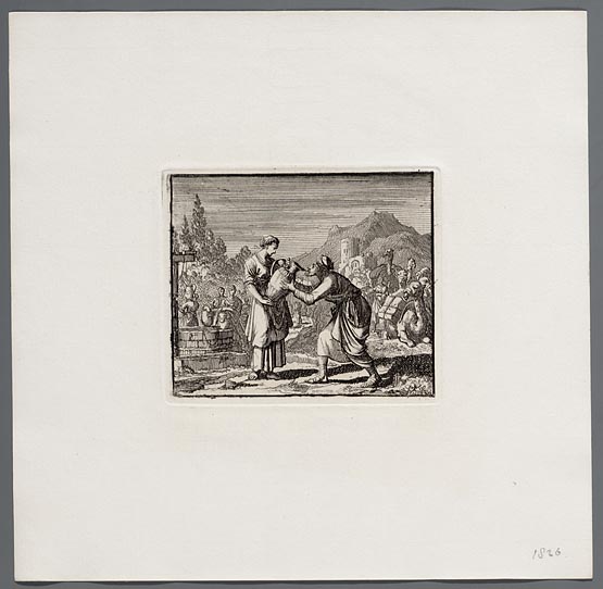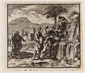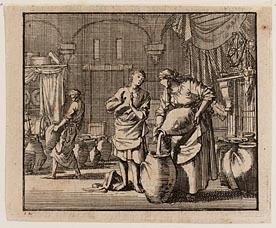 De weduwe te Zarfath en haar 2 zoons vullen vaatwerk...