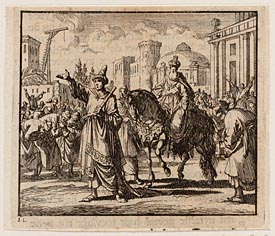 Mordechai te paard ontvangt eerbewijzen van het volk