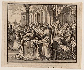 Pilatus op de rechterstoel te Jeruzalem laat een Joo...