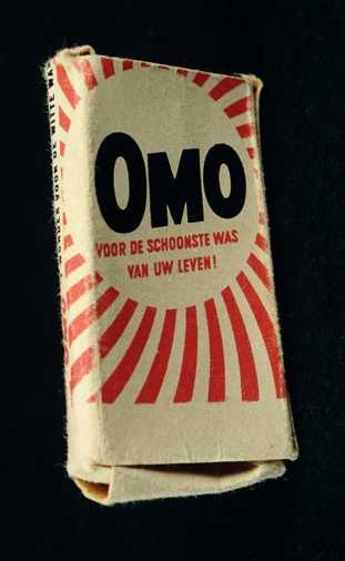 Klein rechthoekig pak "Omo" wasmiddel, rood, wit en ...