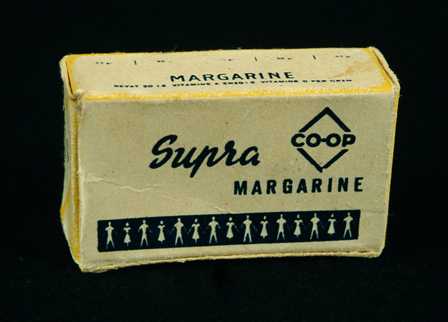 Klein rechthoekig pak "Co-op" Supra margarine, gebro...