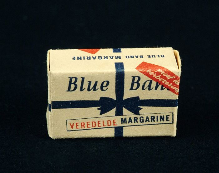 Klein rechthoekig pakje "Blue Band" margarine, gebro...