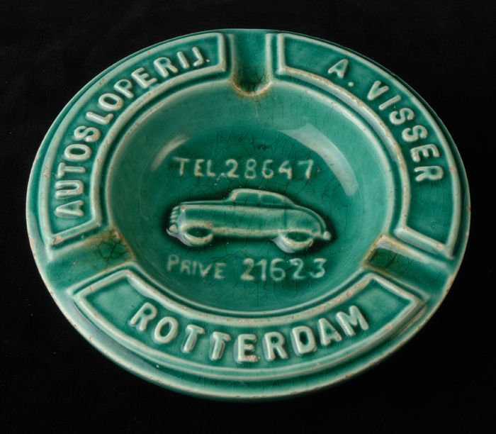 Asbak met "Autosloperij. A. Visser. Rotterdam."