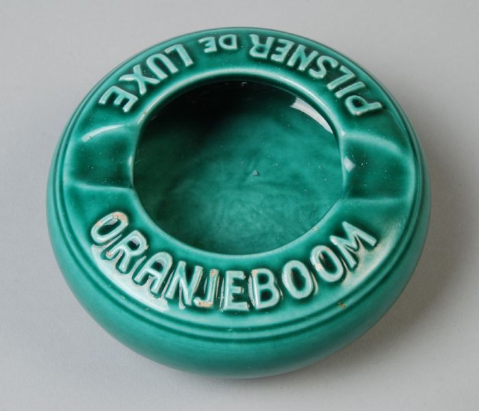Groene asbak met "Oranjeboom Pilsner de Luxe"