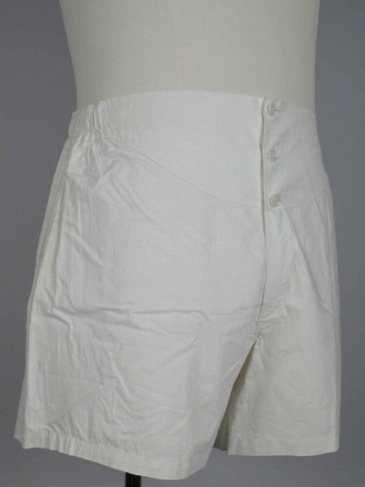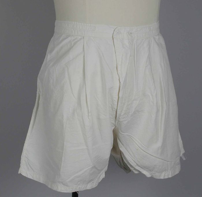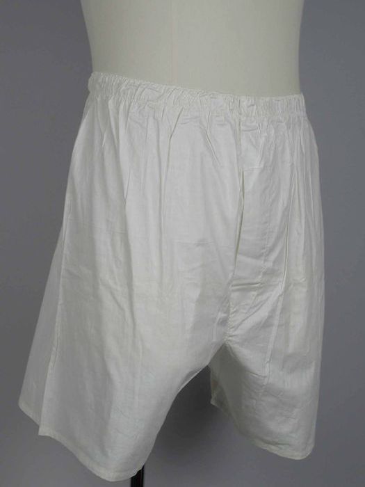Wijde onderbroek van stevig wit keperkatoen, strikba...