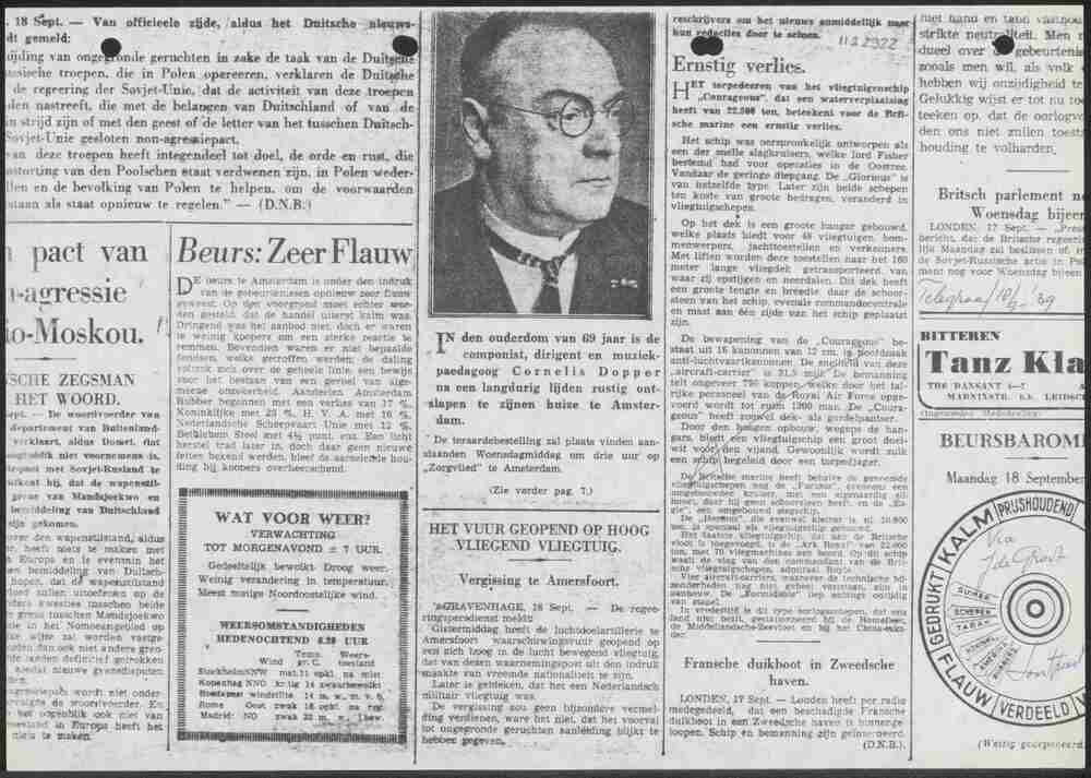 Algemeen Nederlandsch Persbureau, mededelingen, 19 m...