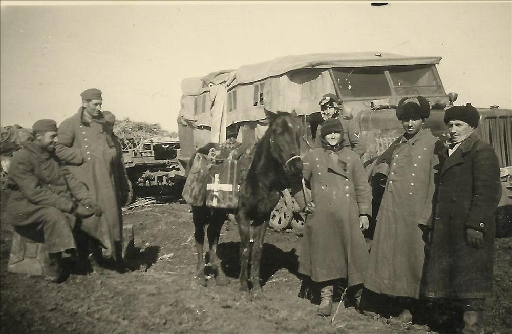 Russische krijgsgevangene; Duitse halftrack artiller...