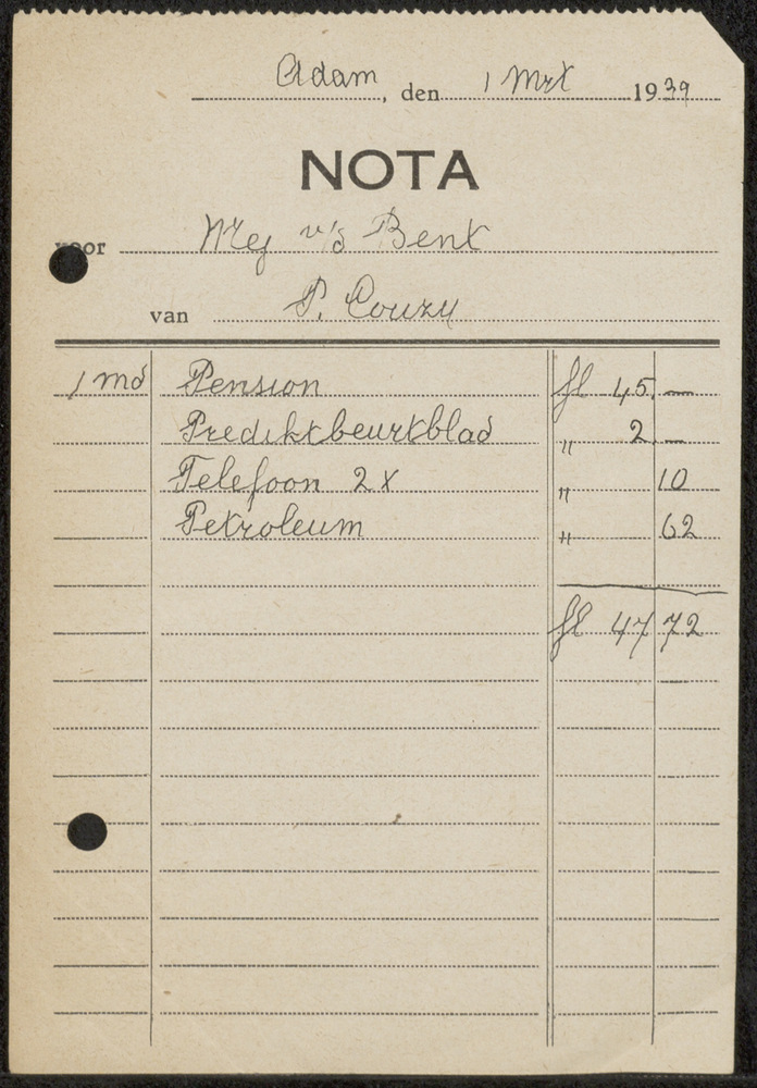 Kassabon, Nota A'dam 1 mrt 1939
