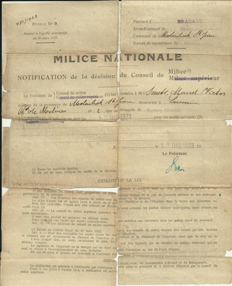 Milice Nationale . Notificatie der beslissing van de...