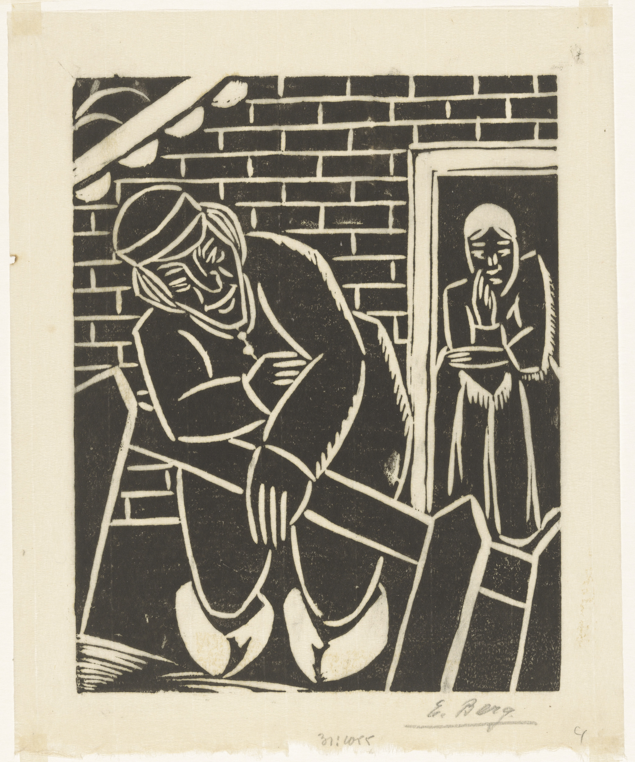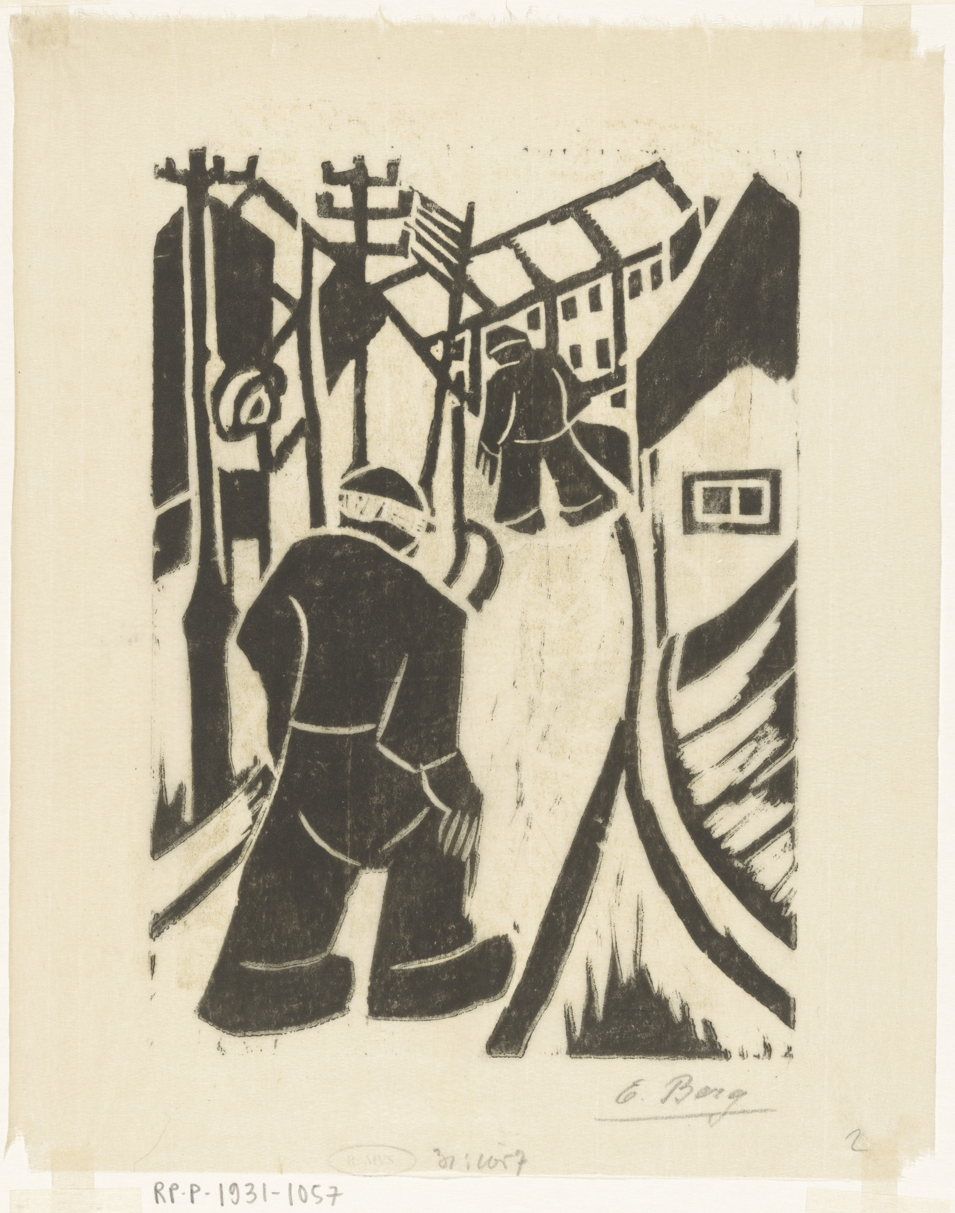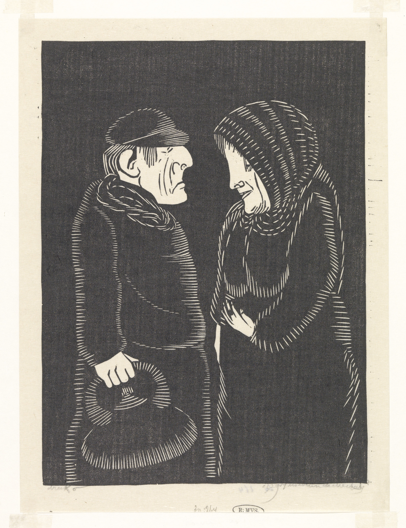 Twee figuren in dorpsstraat