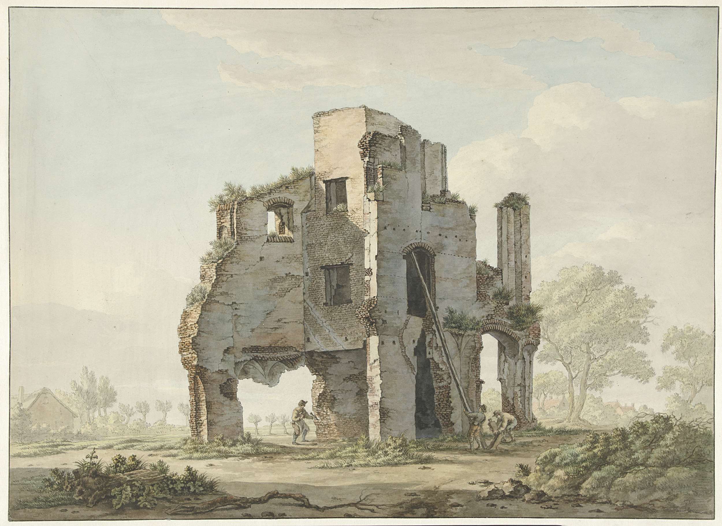 Het afbreken van de ruïne van de Abdij van Rijnsburg
