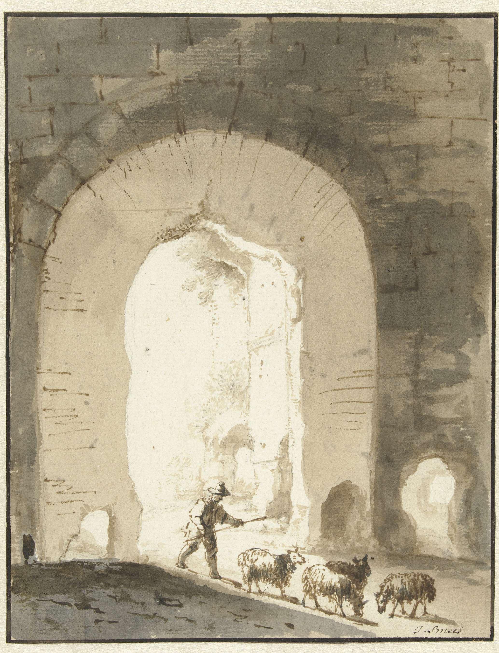 Schaapherder bij ruïne