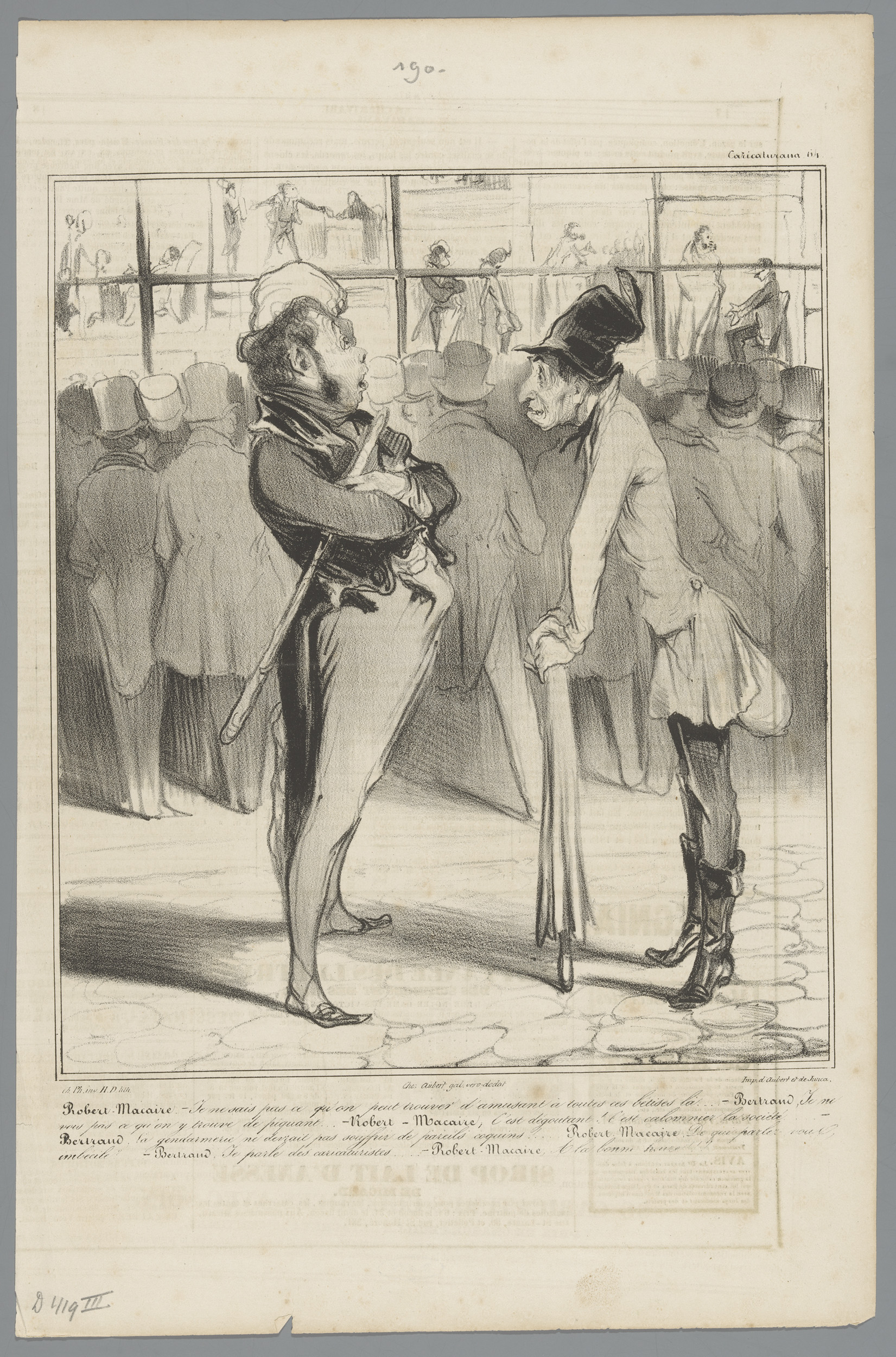 Robert Macaire en Bertrand voor de etalage van Aubert