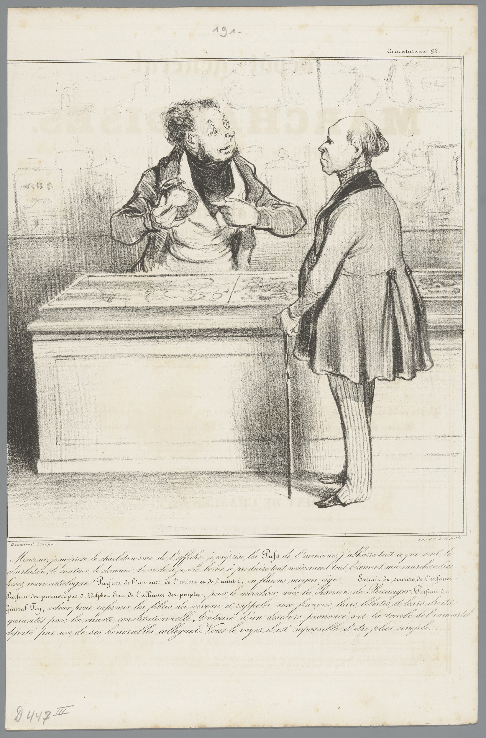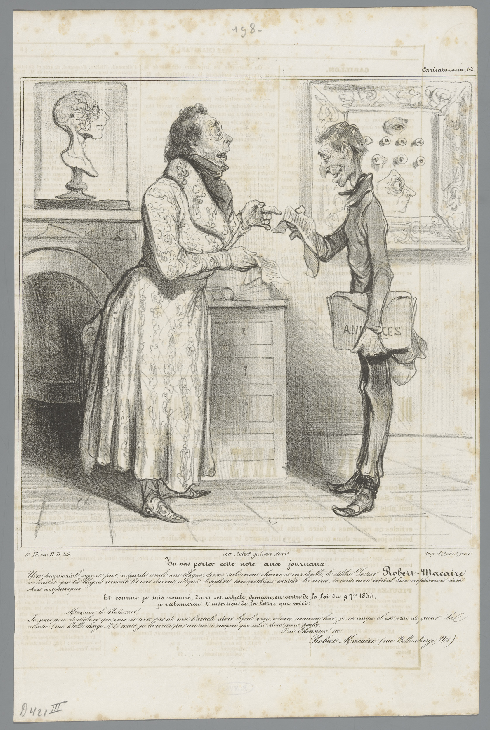 Apotheker Robert Macaire beveelt zijn klant een prod...