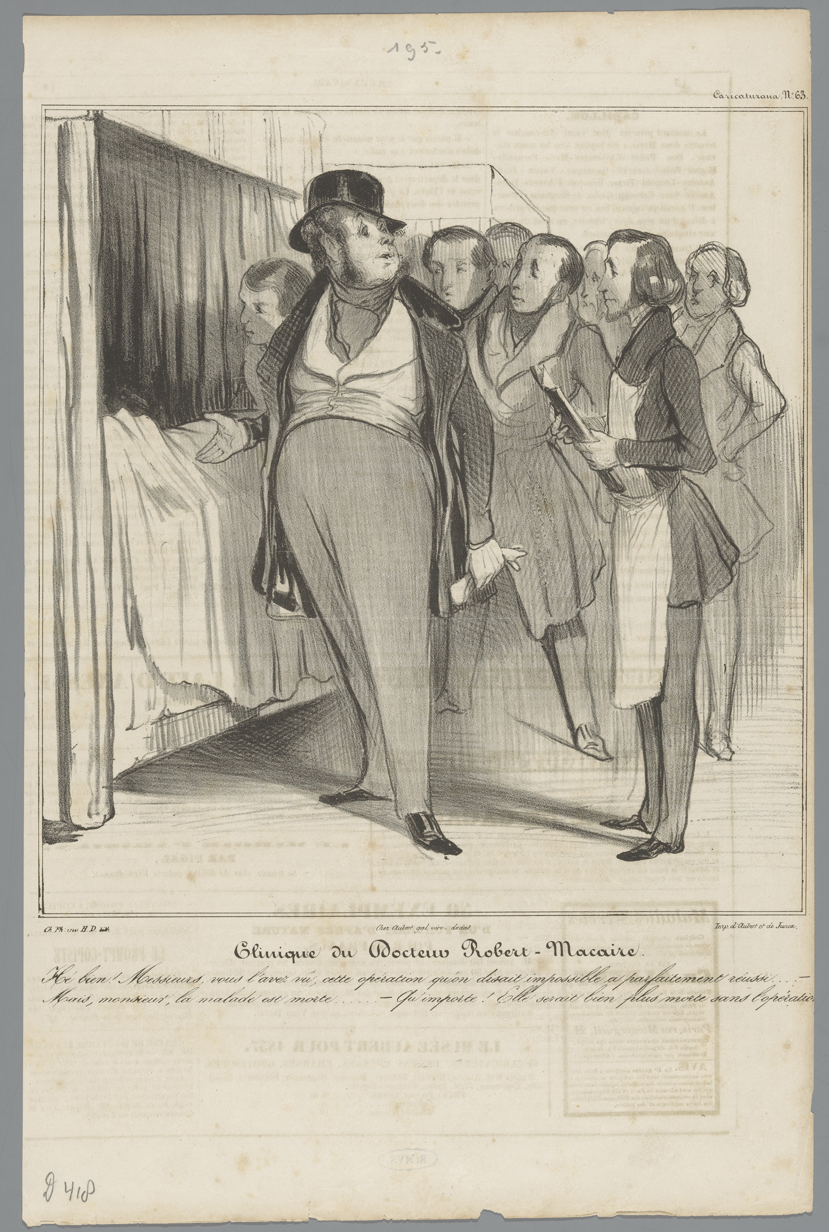 Dokter Robert Macaire toont zijn studenten het resul...