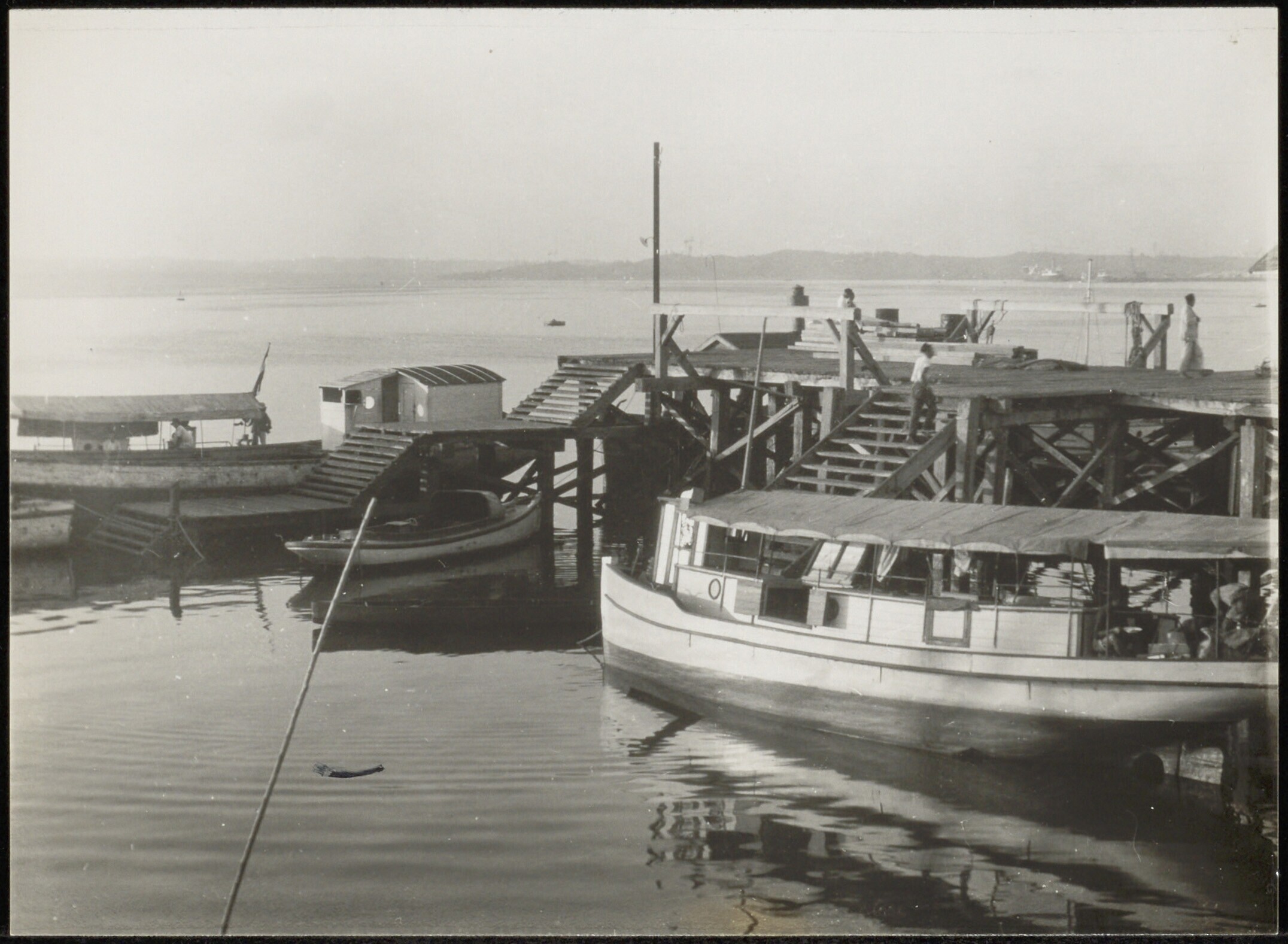 Aangemeerde boten aan een steiger te Balikpapan