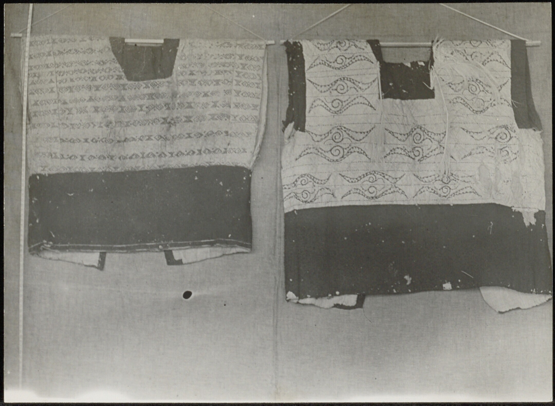 Twee bewerkte schilden en een trom van de Segai-Dayaks