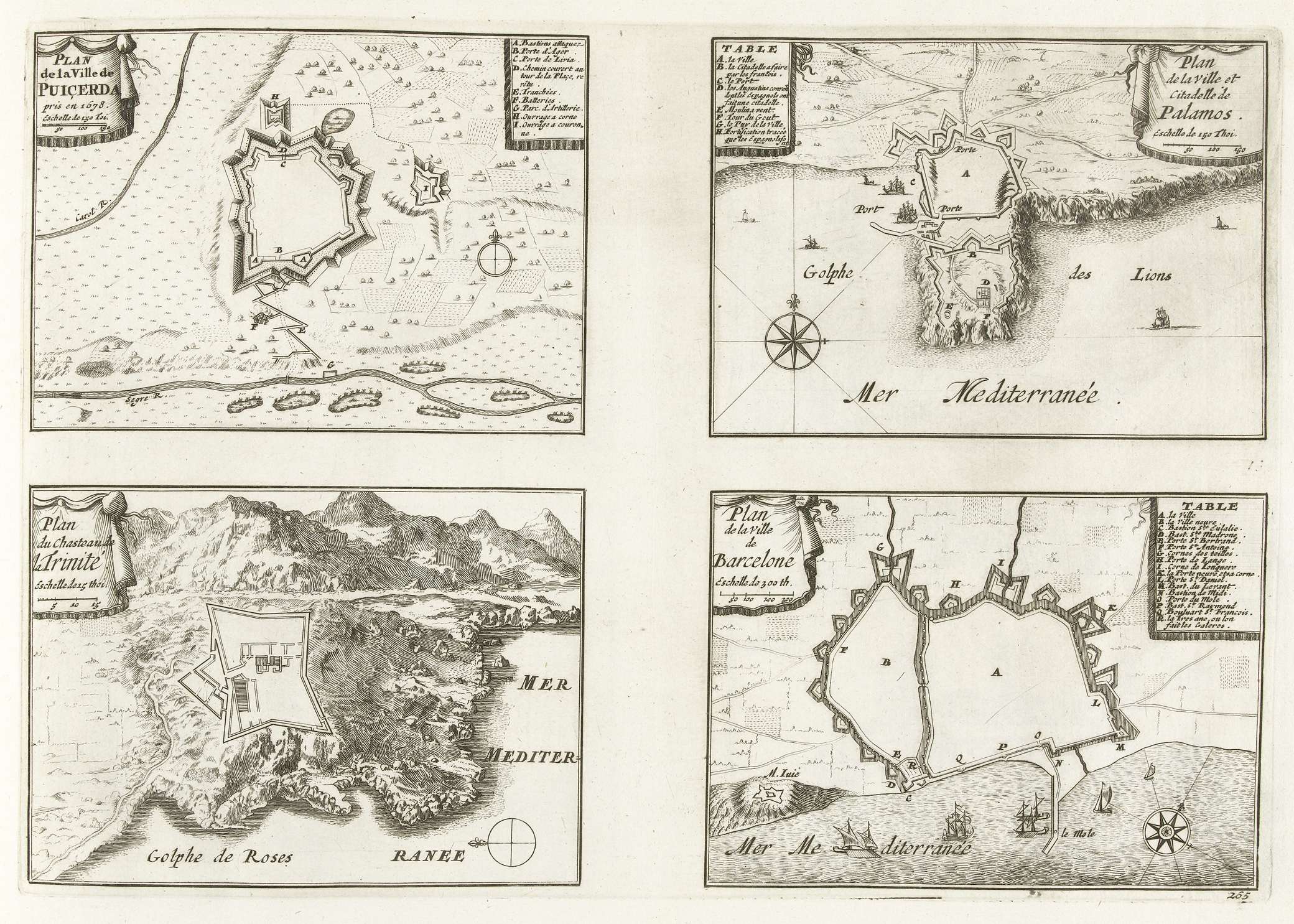 Plattegronden van Puigcerdá, Palamos, Château de la ...