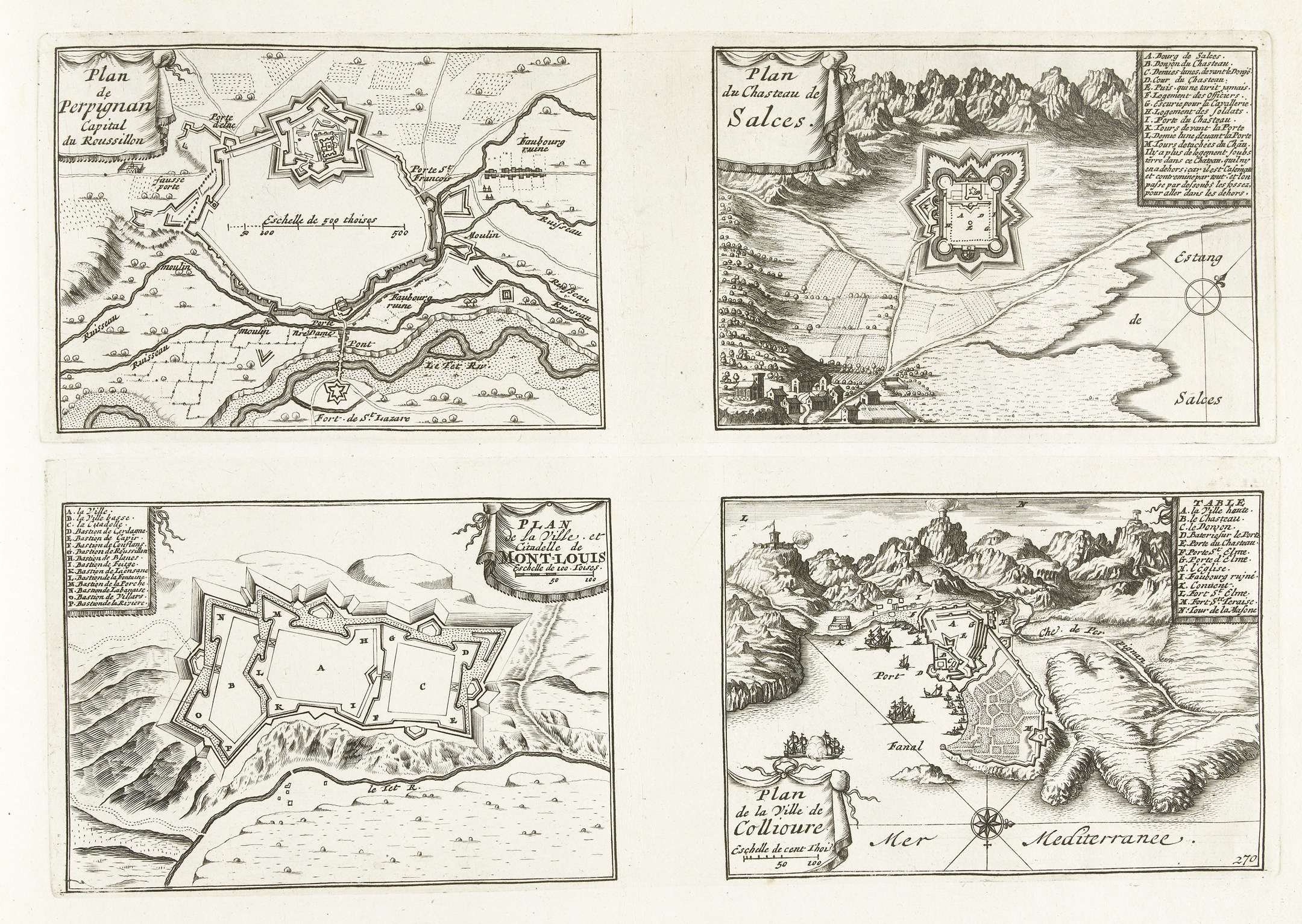 Plattegronden van Perpignan, Salces, Mont-Louis en C...