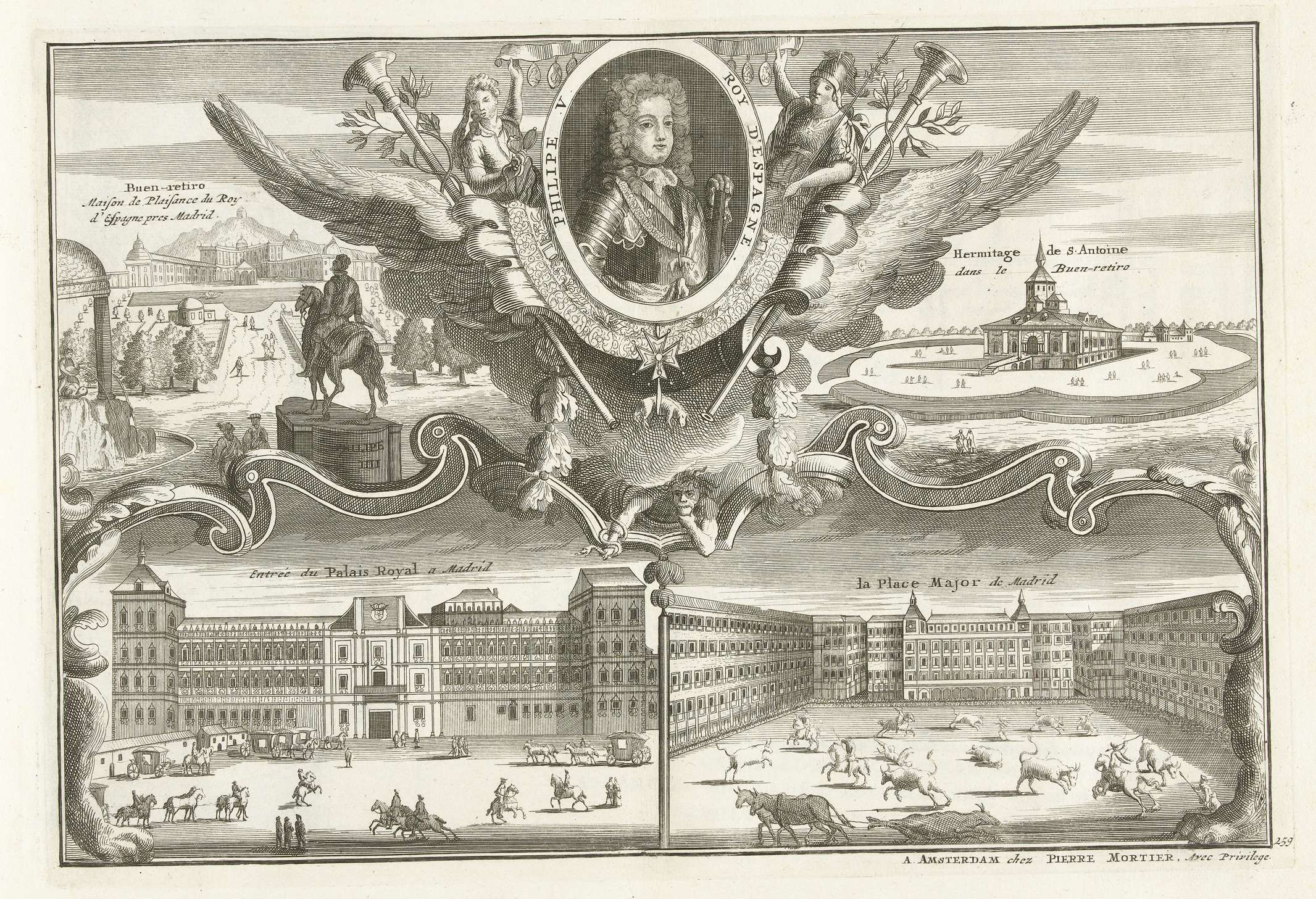 Koninklijk Paleis te Madrid en portret van koning Fi...