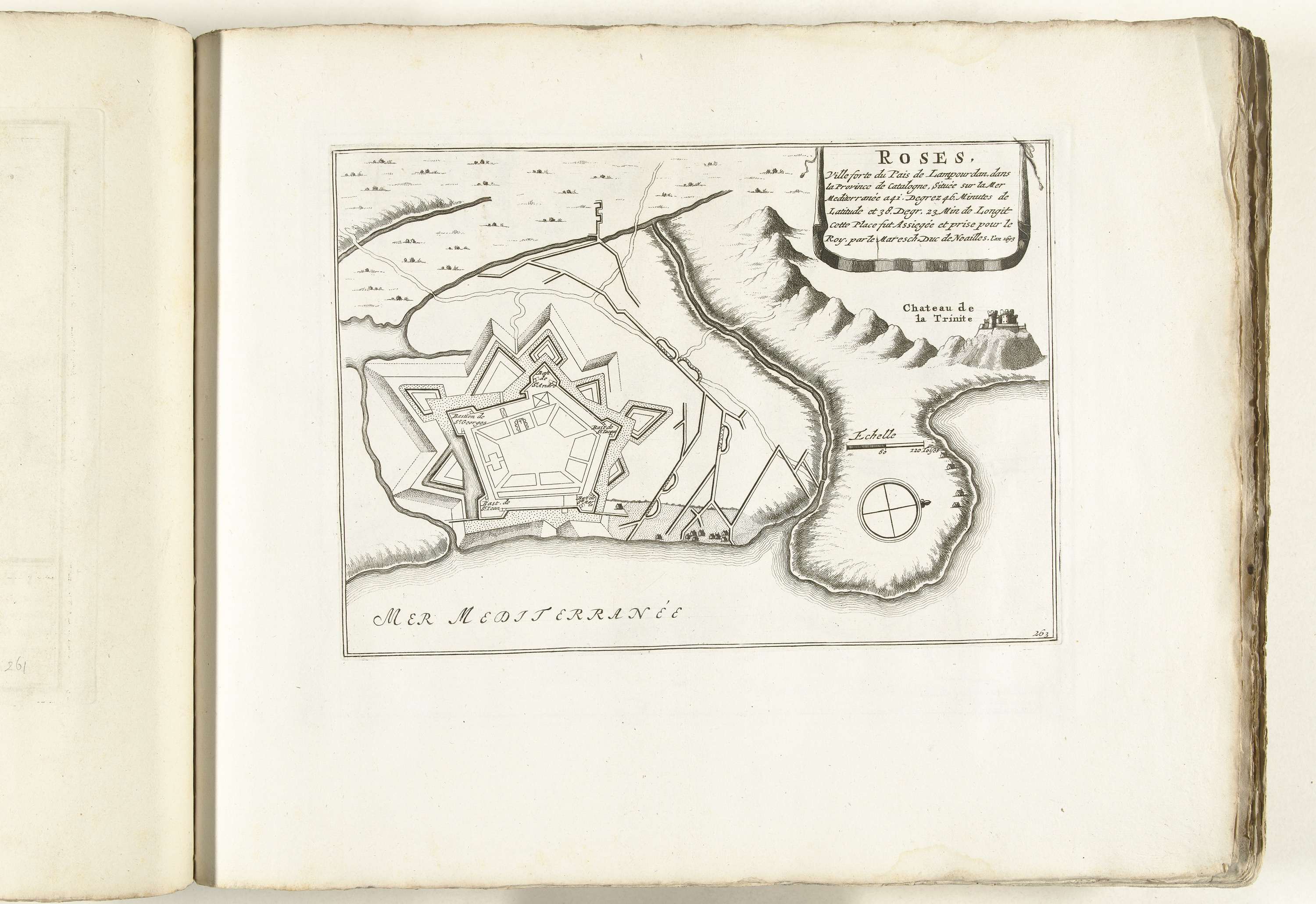 Plattegrond van Rosas, ca. 1702