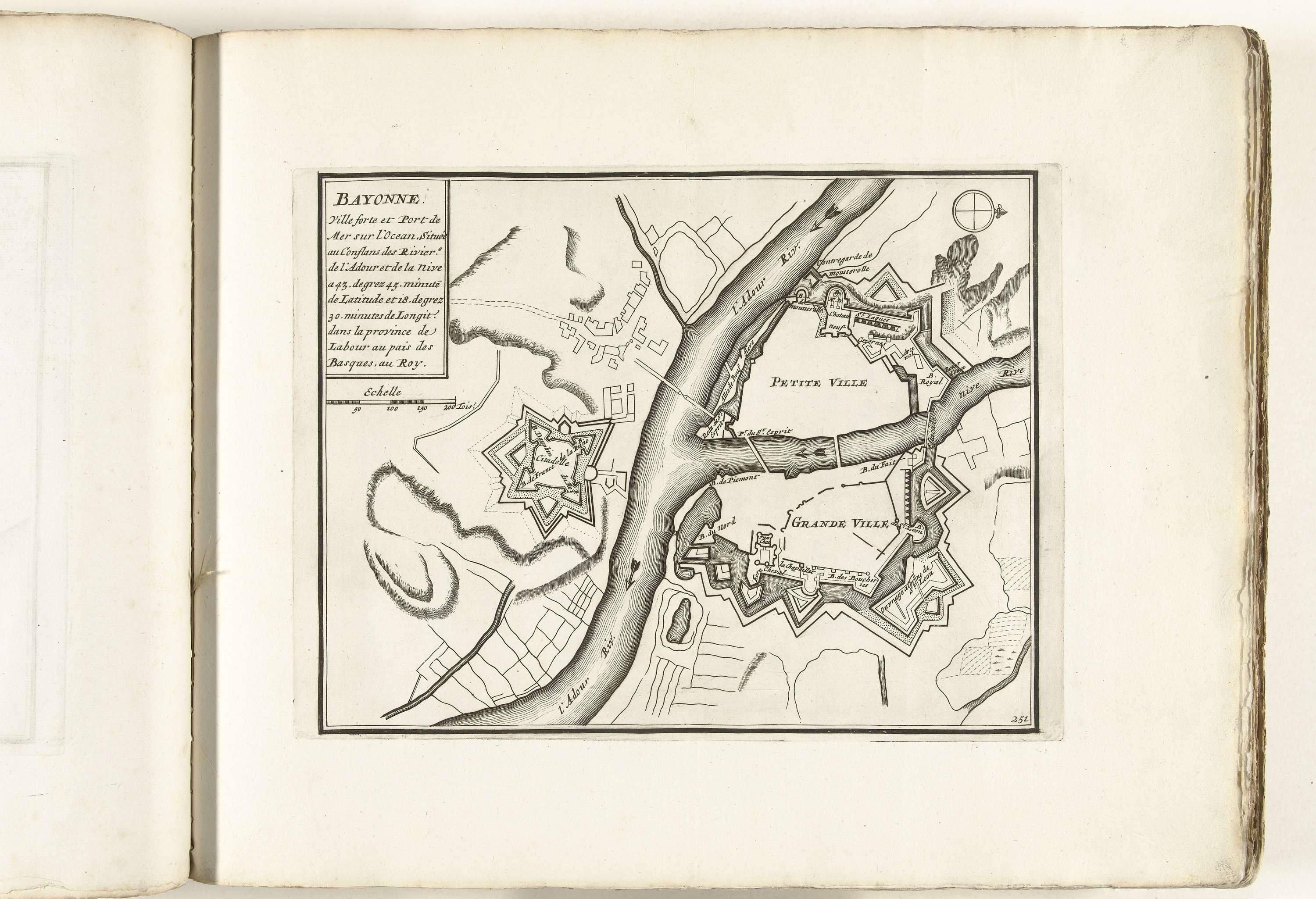 Plattegrond van Bayonne, ca. 1702