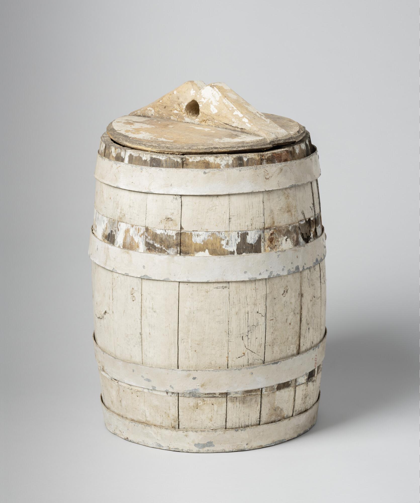 Vat, wit geschilderd, gebruikt als drijver voor staa...