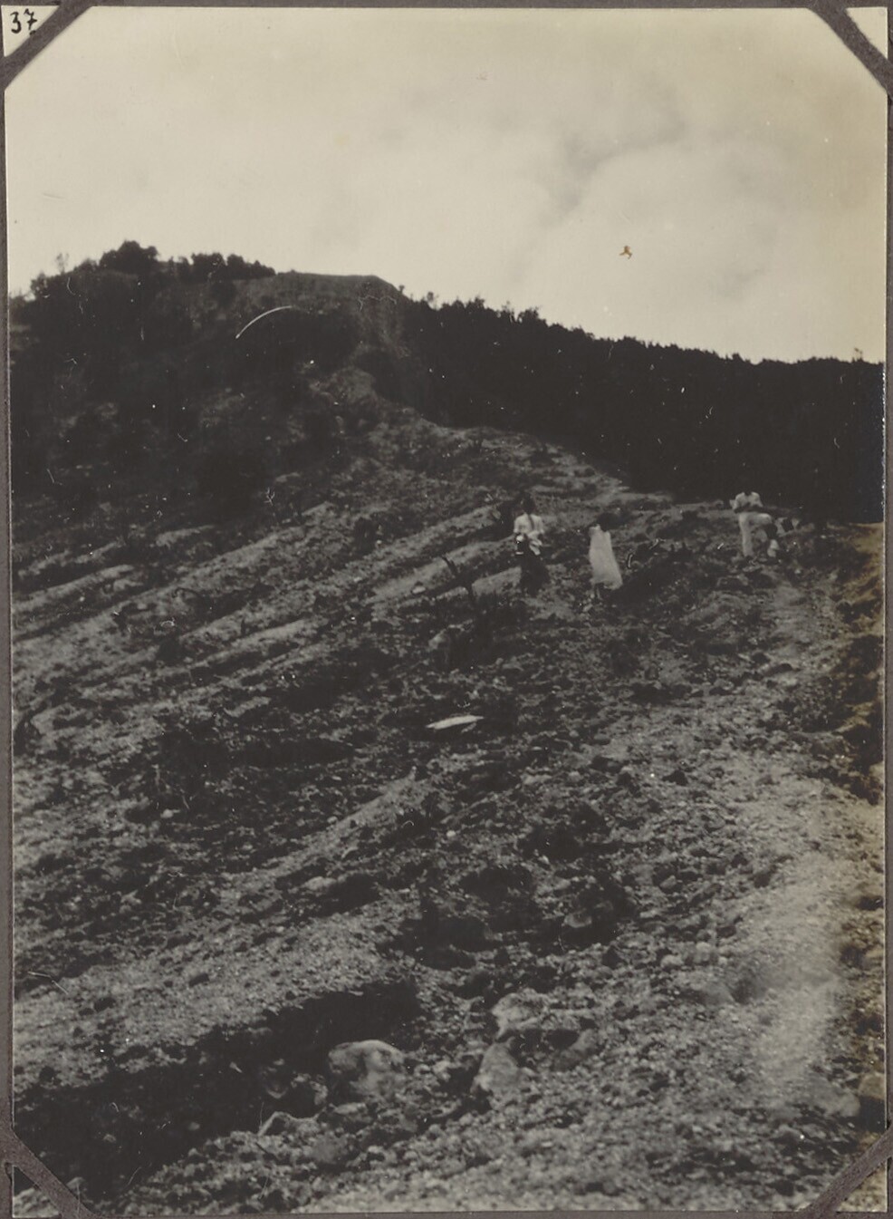 Gezelschap bij scheidingswand tussen twee kraters va...