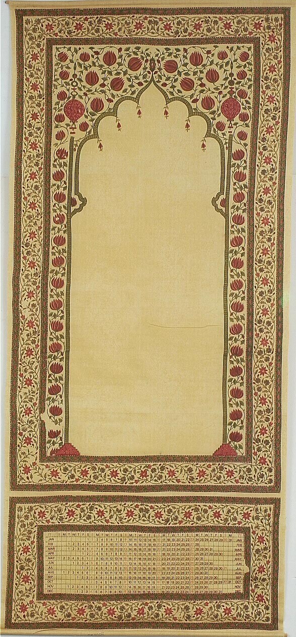 Kalender op textiel met een afbeelding in de vorm va...