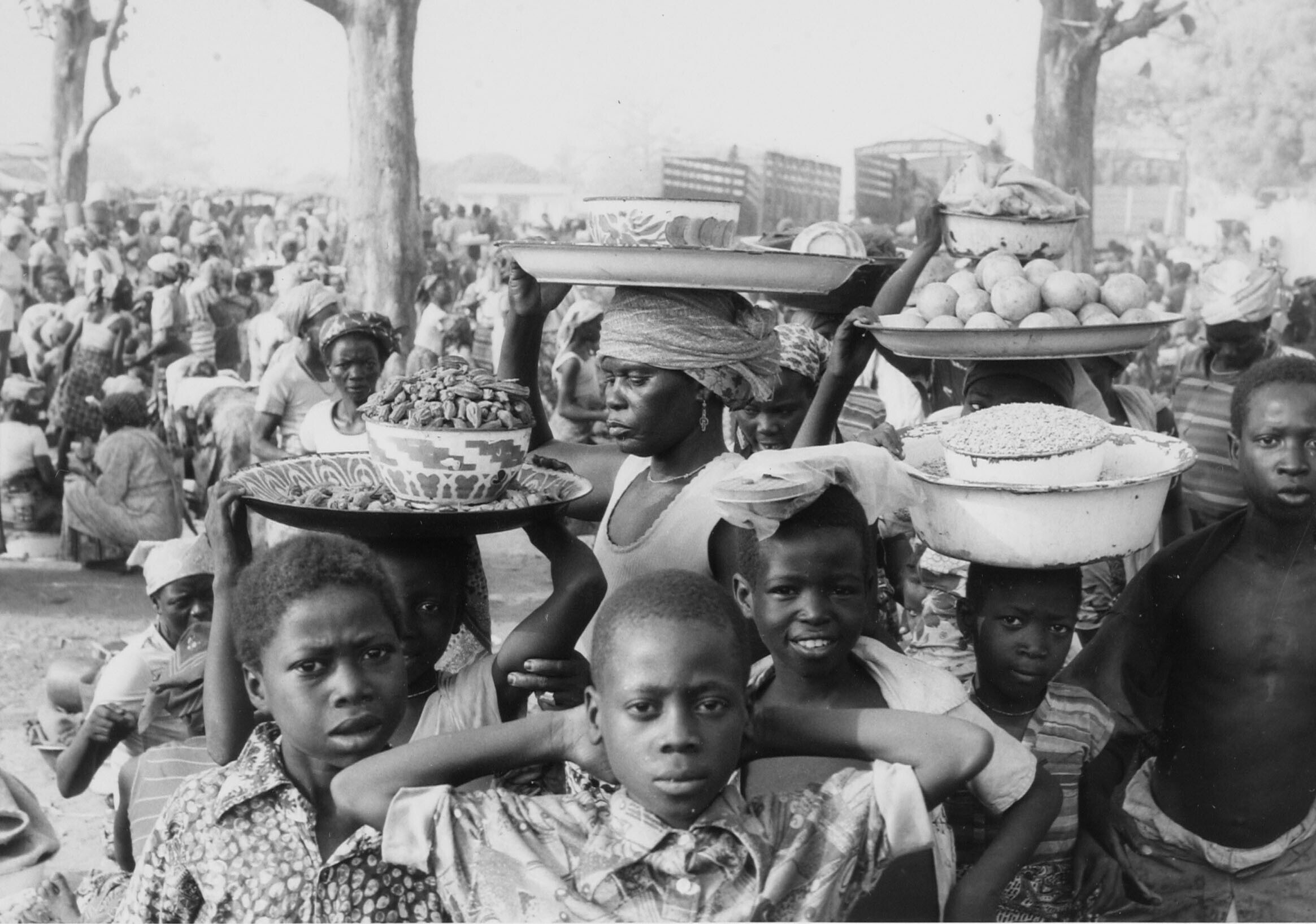 Kinderen met etenswaren op de markt in Kumbungu. Nor...