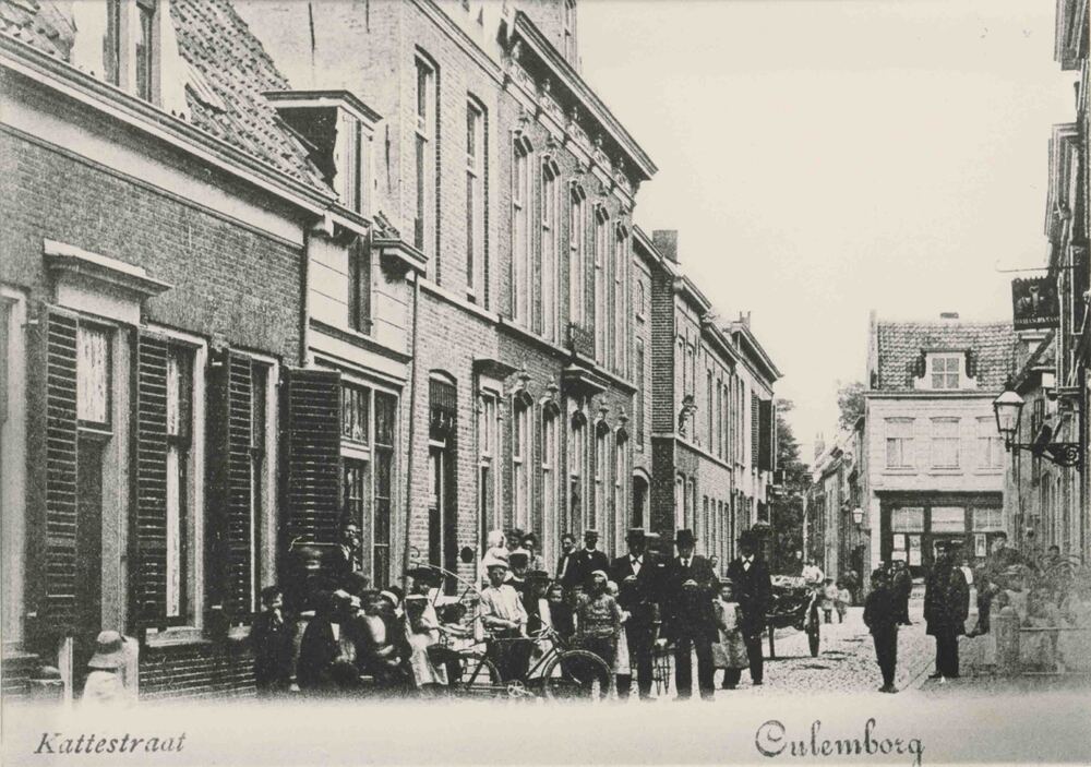 Foto, voorstellende de Kattenstraat te Culemborg, be...