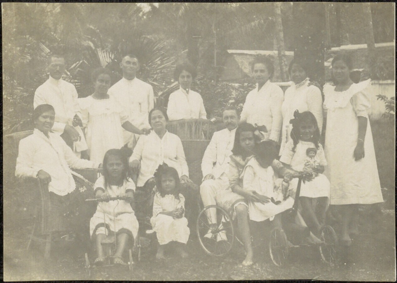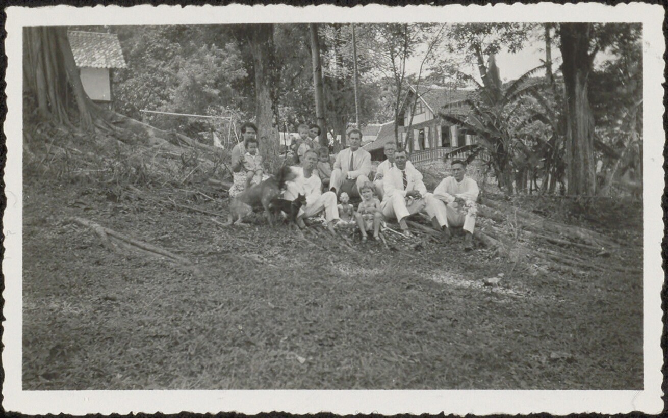 Groepsportret in de tuin, met sectie-opzichter L.C. ...