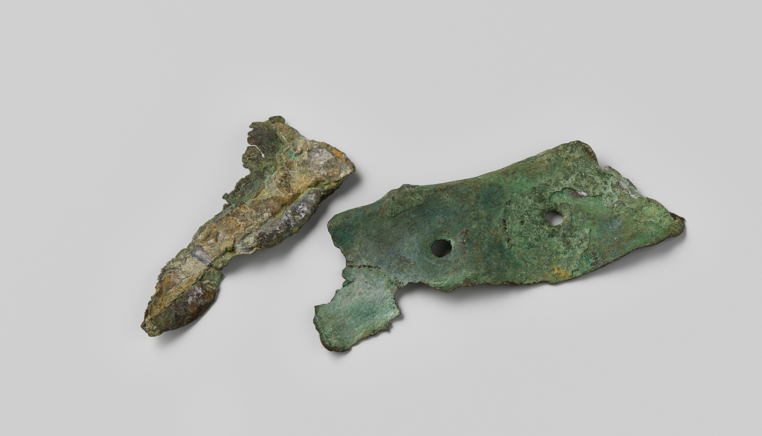 Fragmenten koperen plaatwerk uit het wrak van de Oos...