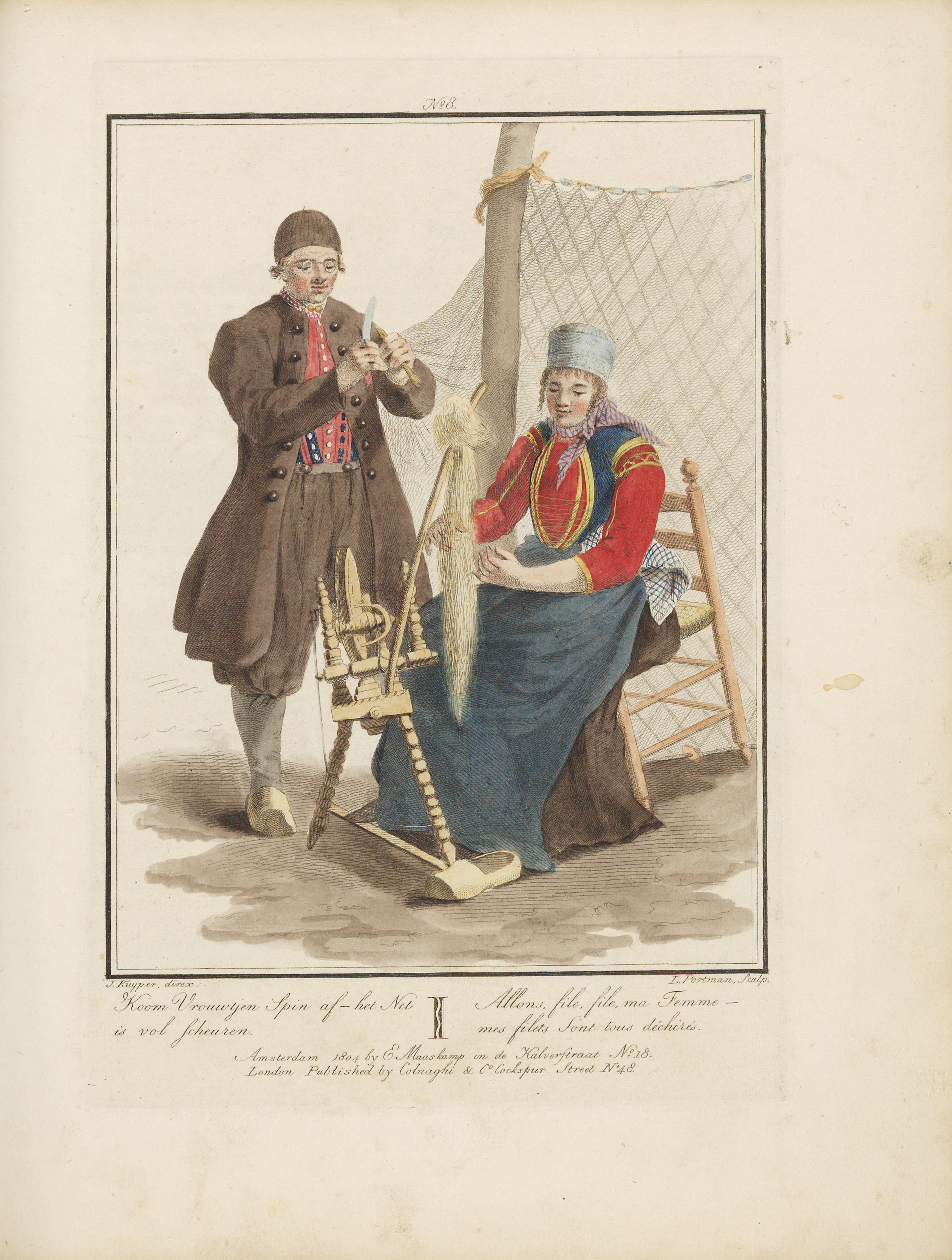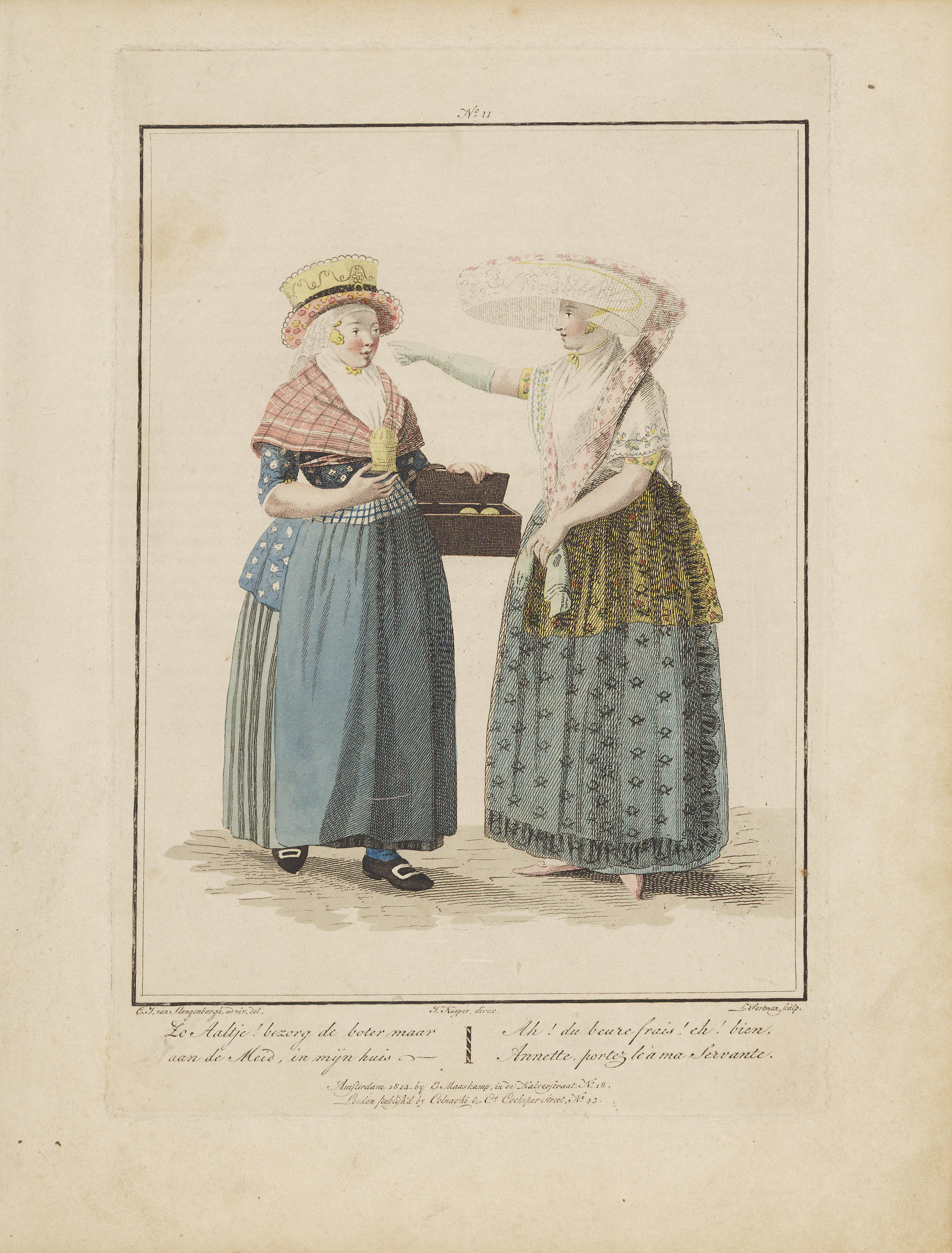 Amsterdamse visverkoopster en ambachtsman (gravure)