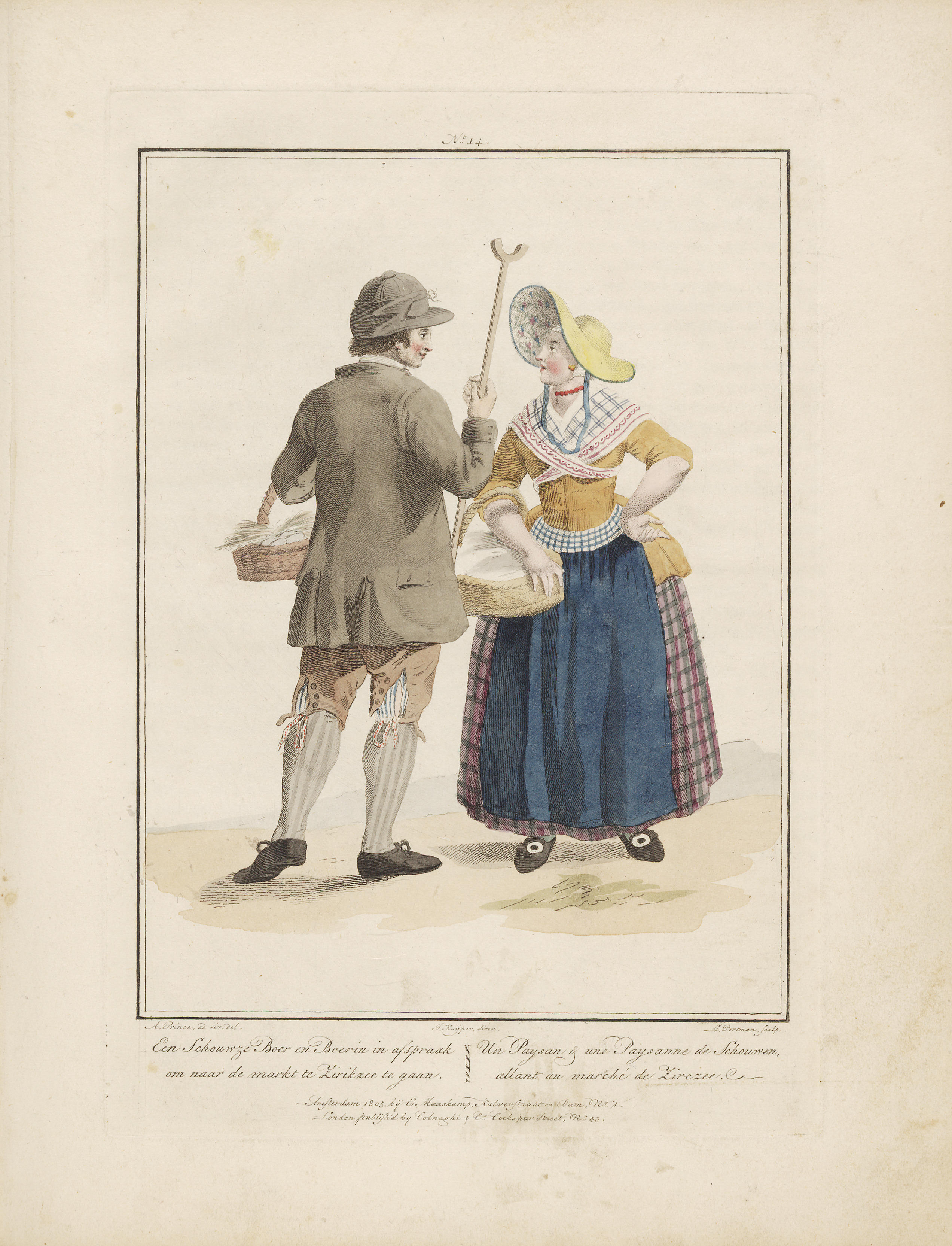 Boer en boerin in de dracht van Zuid-Beveland (gravure)