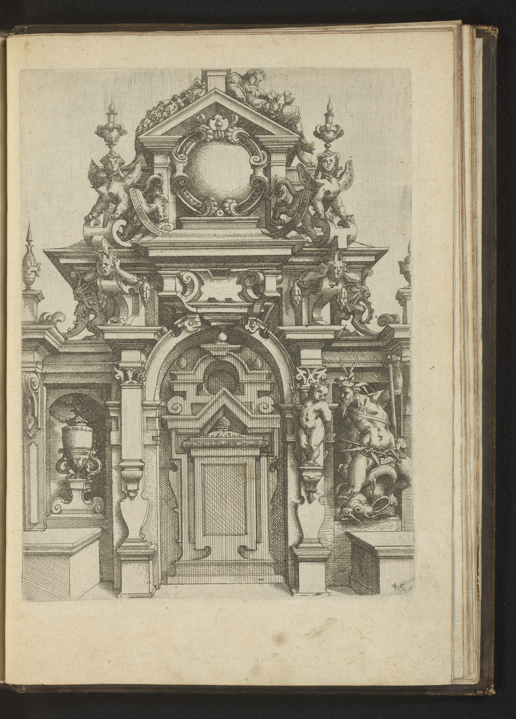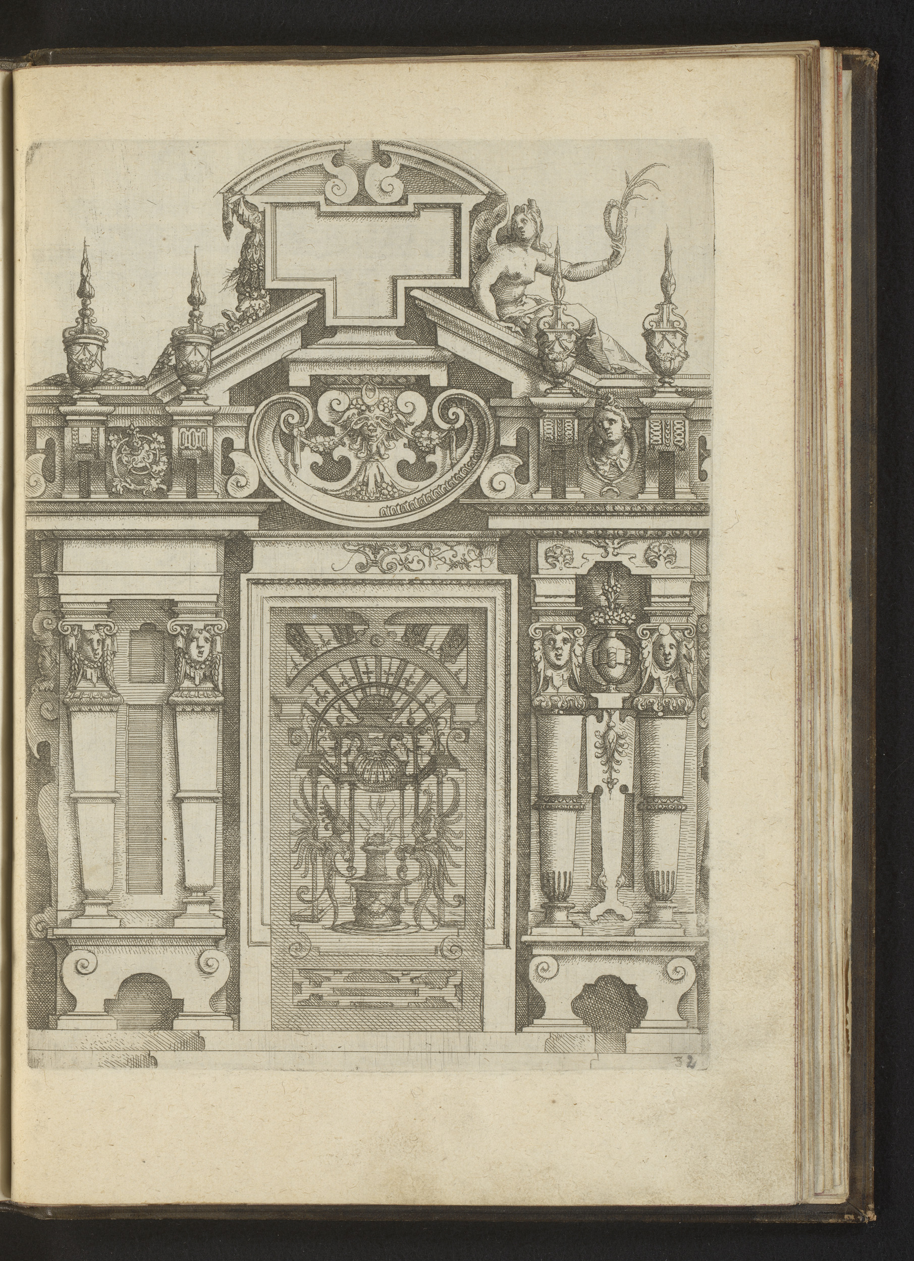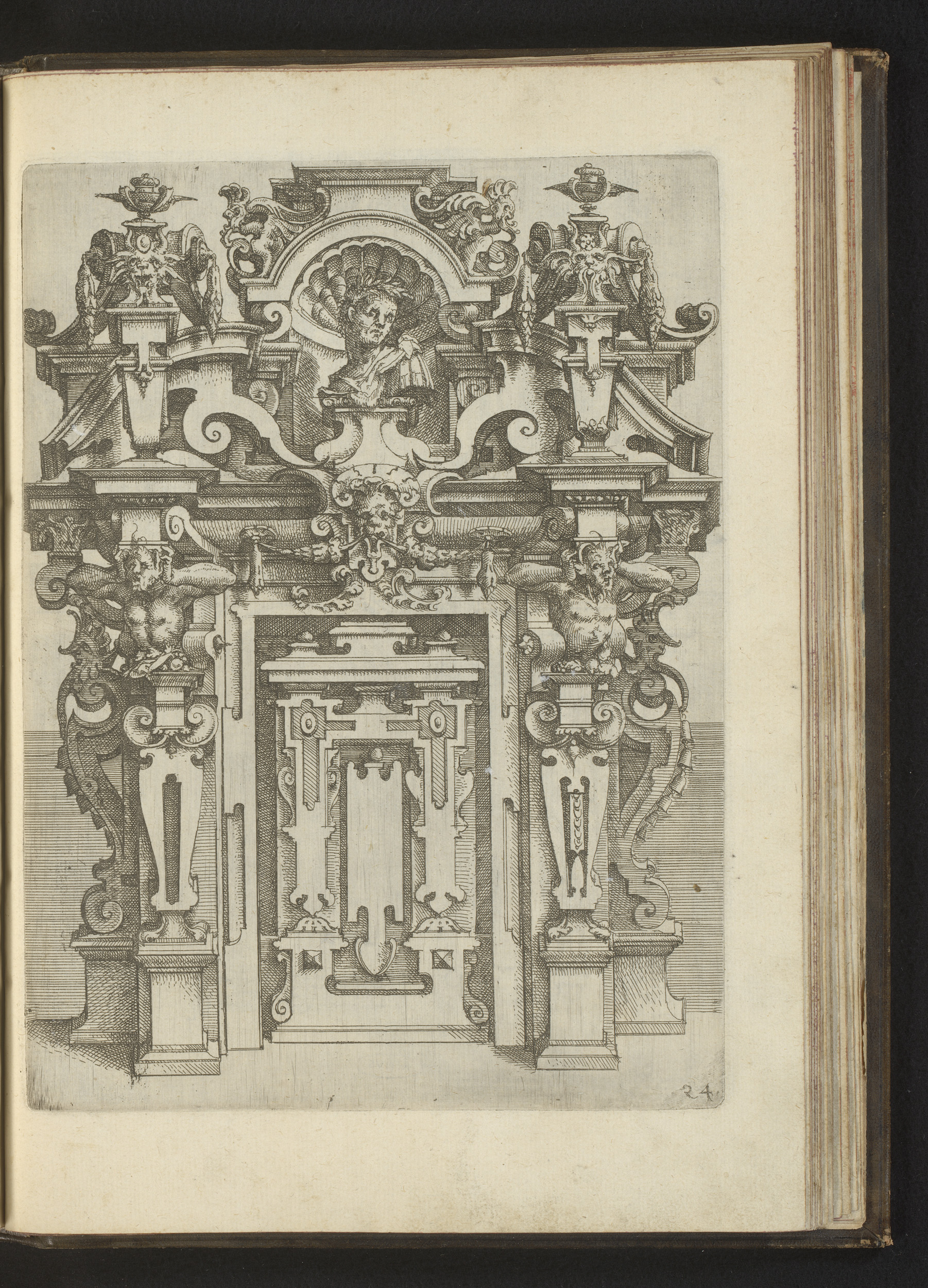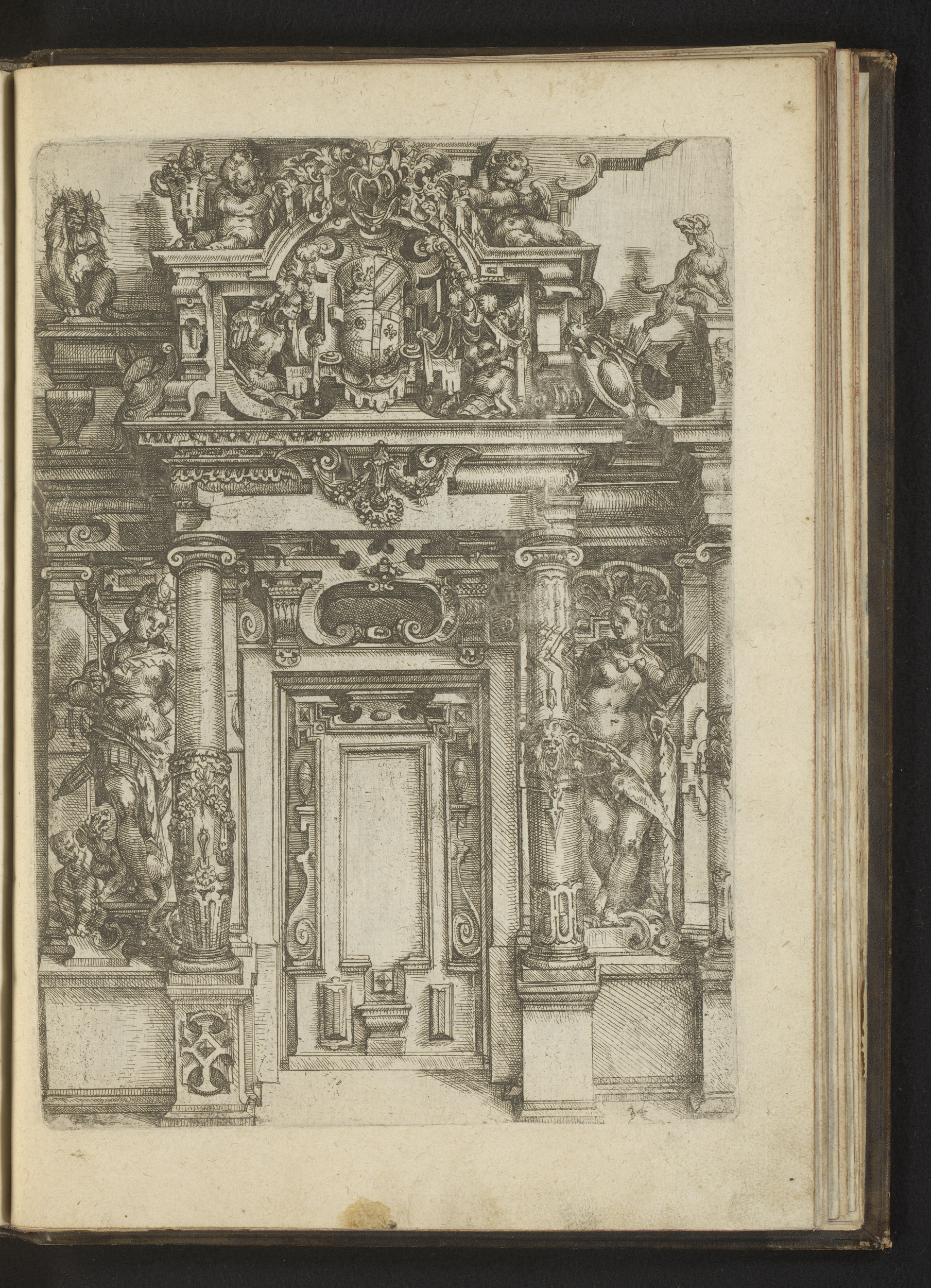 Portaalvormige muurdecoratie met hermen, mascarons e...