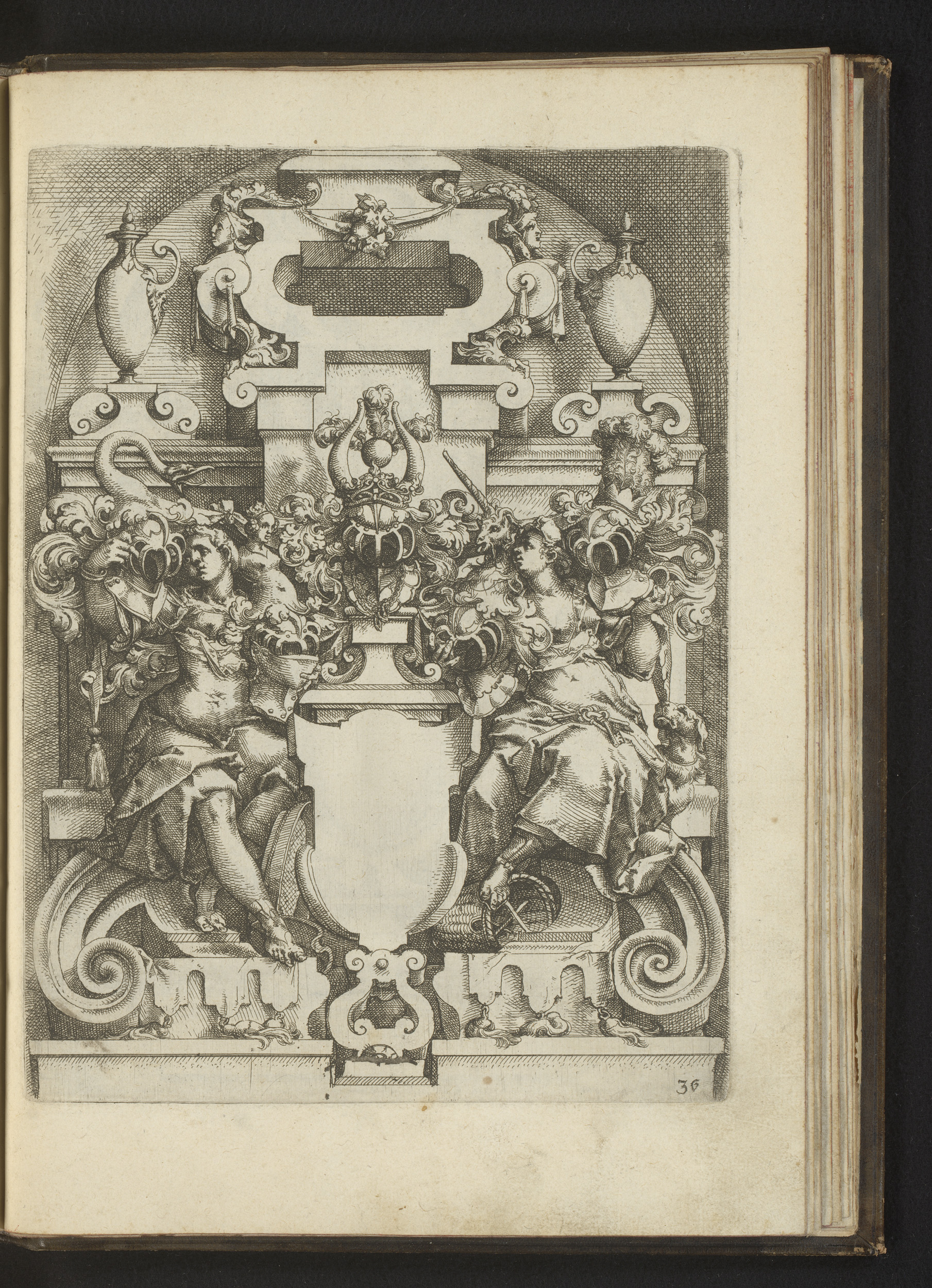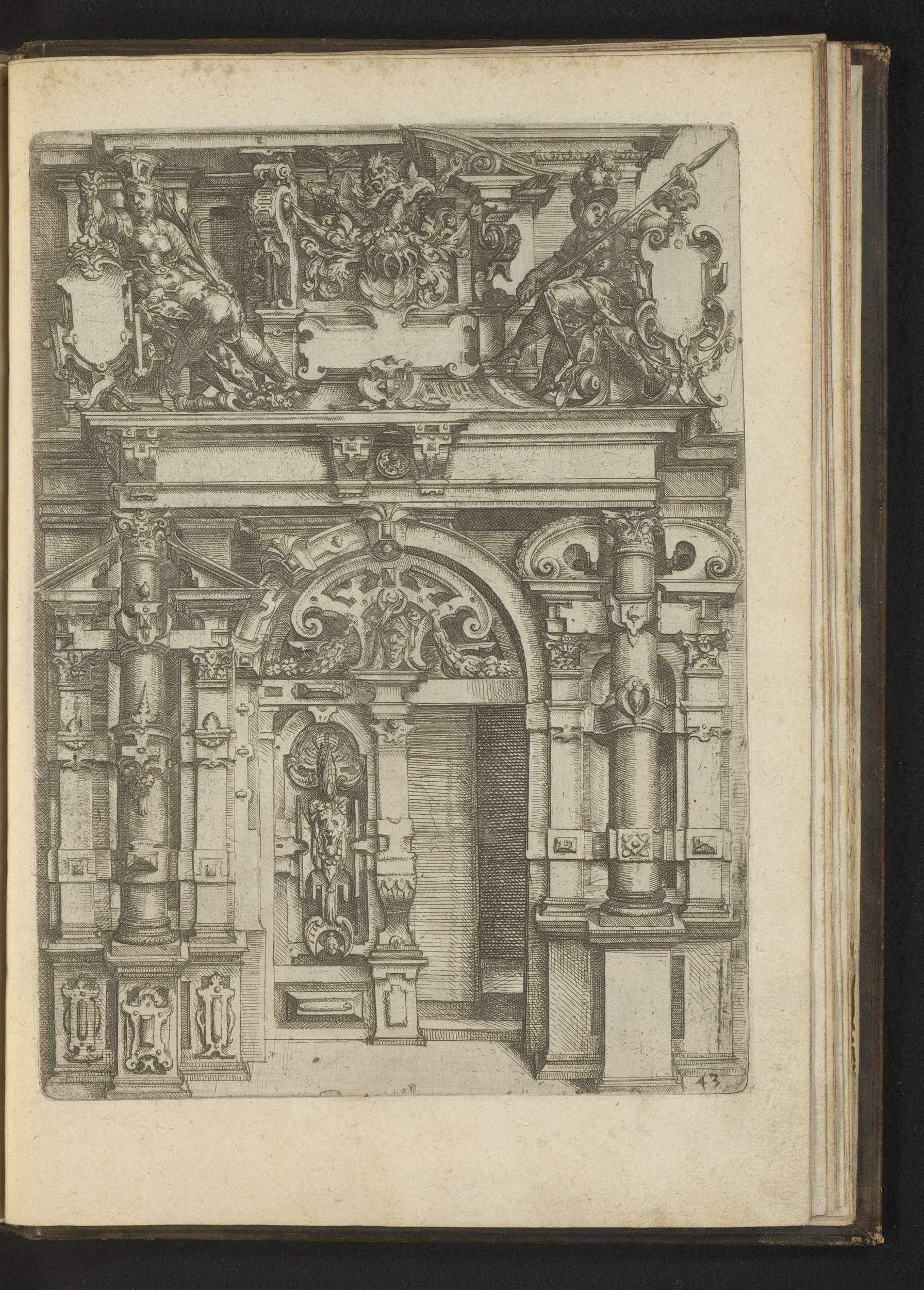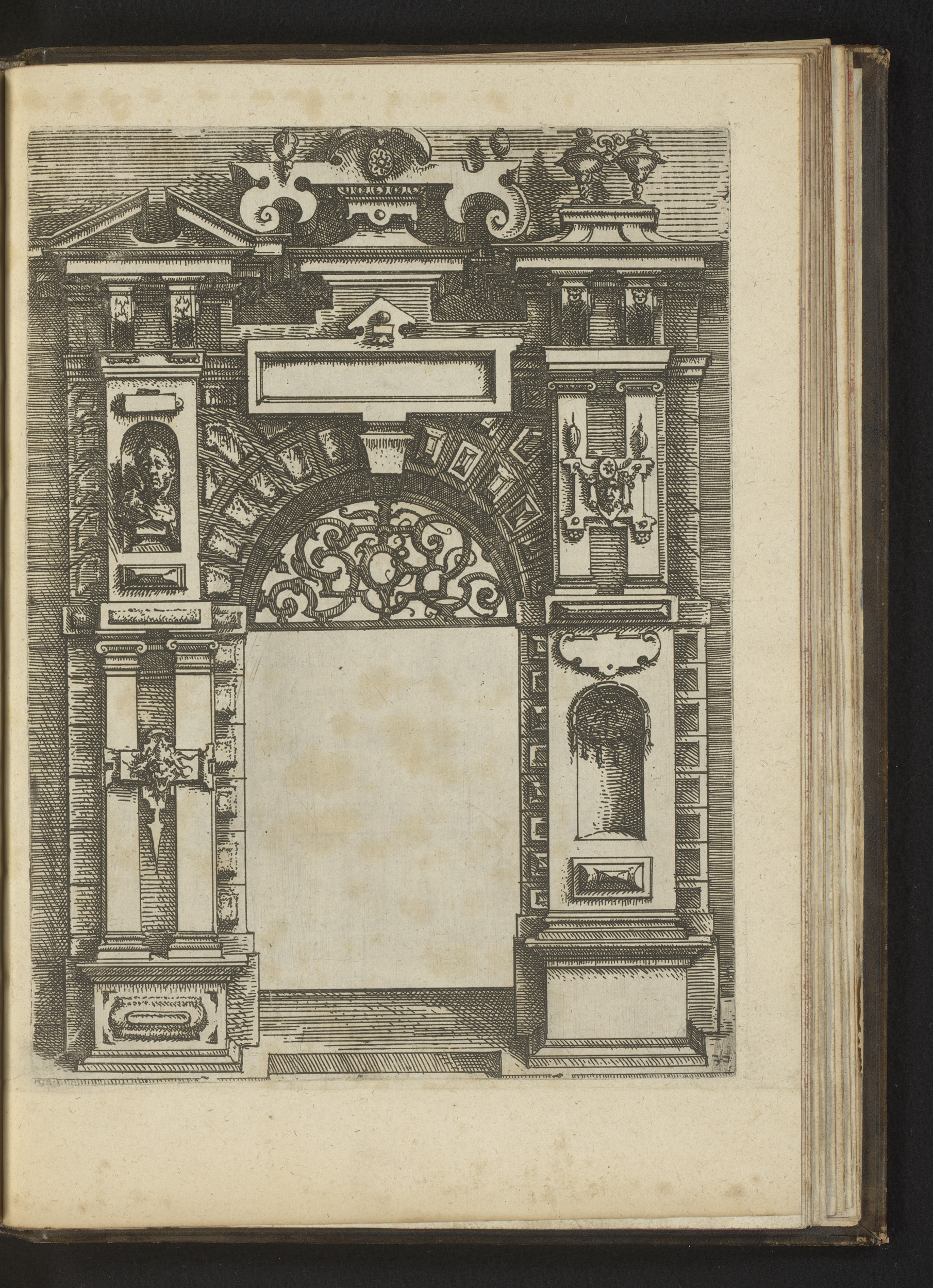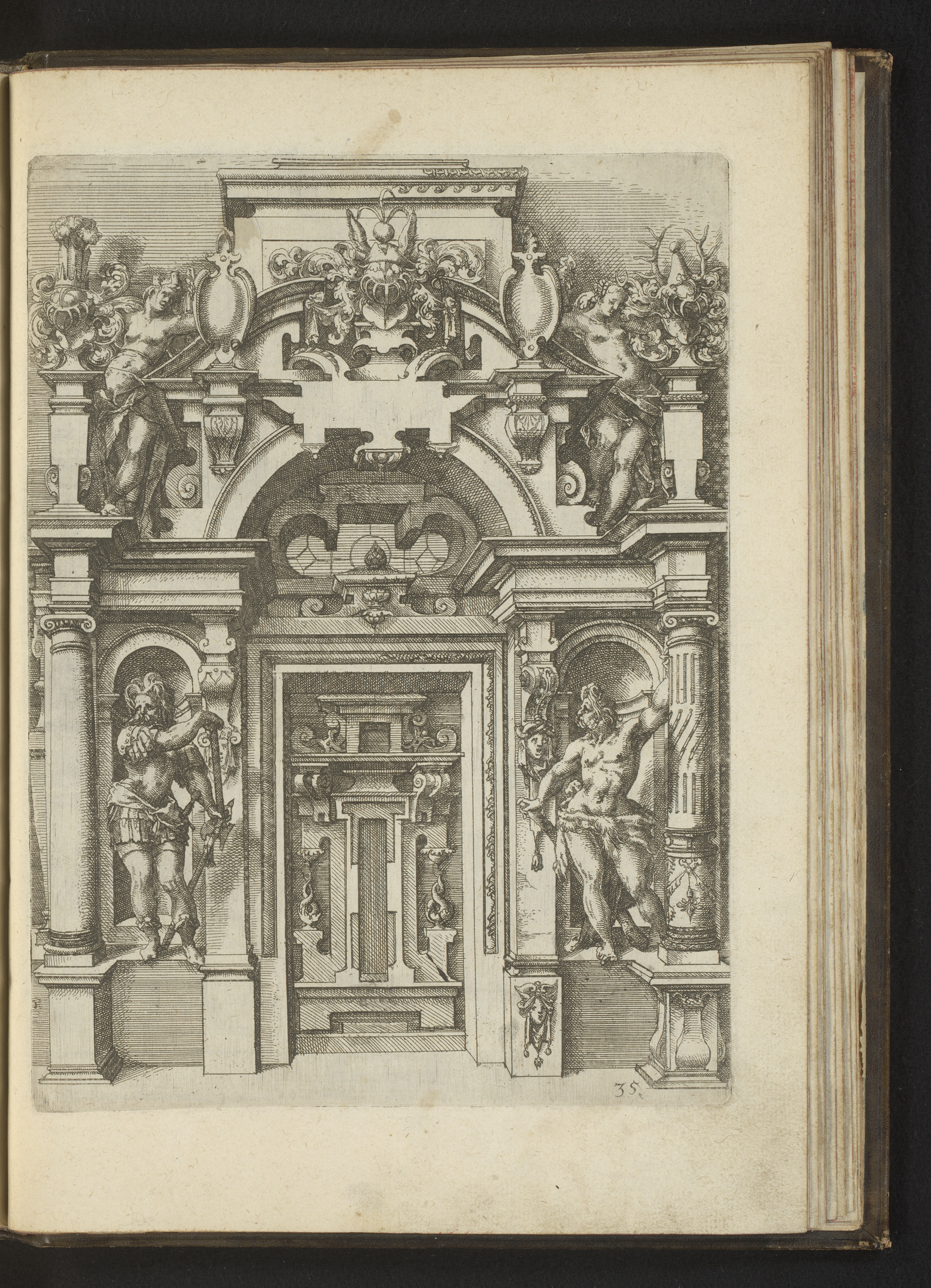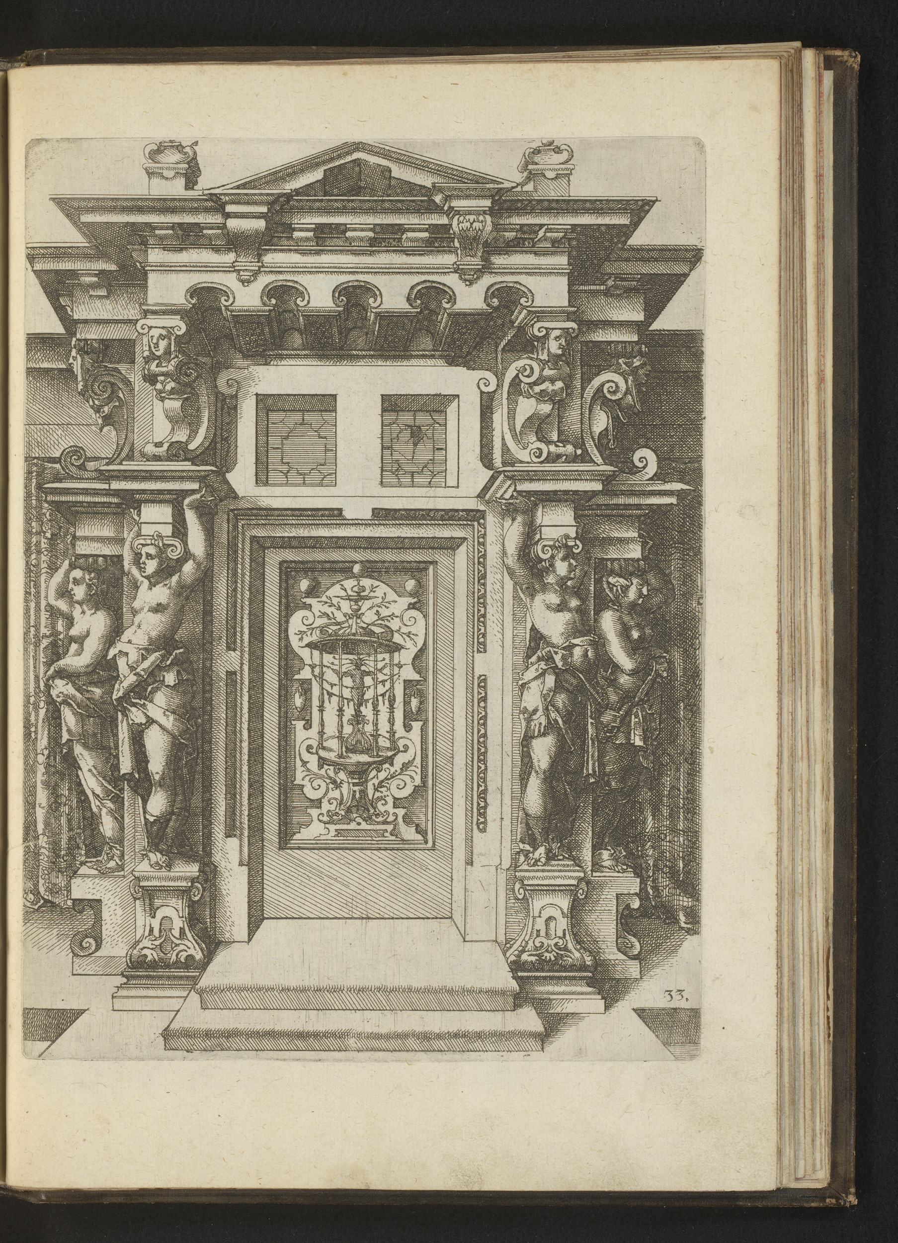 Portaalvormige muurdecoratie met hermen, mascarons e...